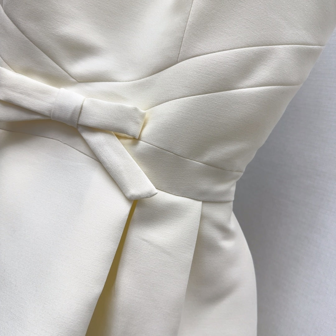 CD 25 Bow Sleeveless Mini Dress White Satin
