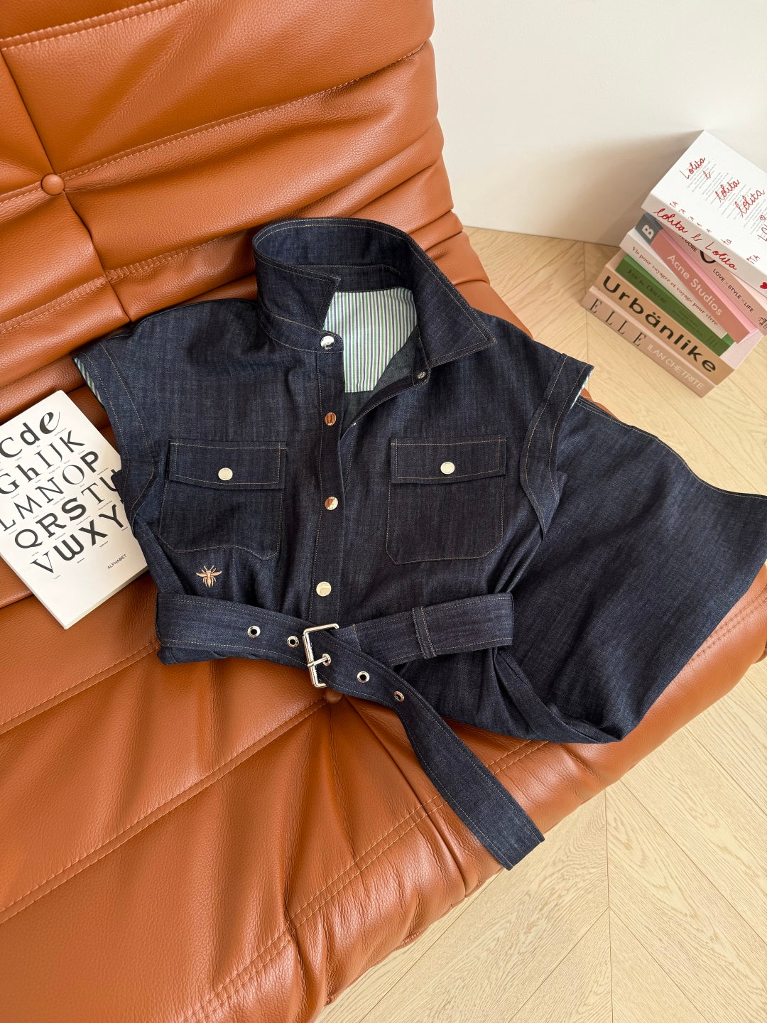 CD 25 Short-sleeved Denim Dress Indigo Blue Cotton