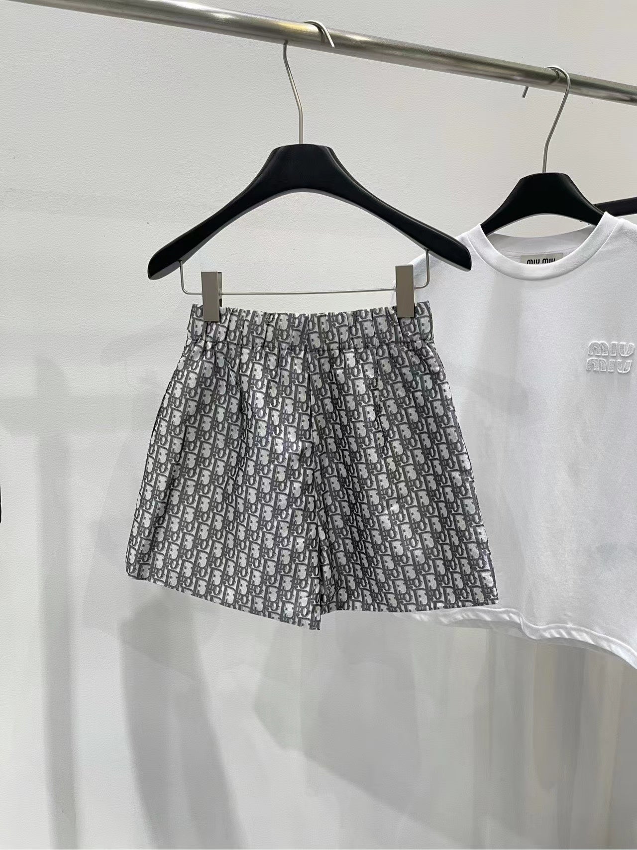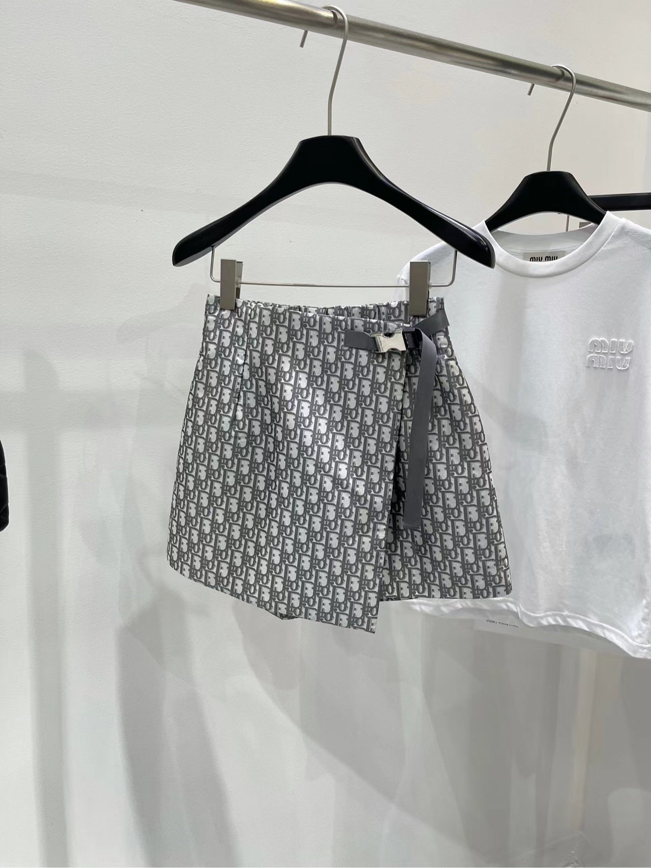 Dior 25C Belt Shirt Short in Gray and White Jacquard
