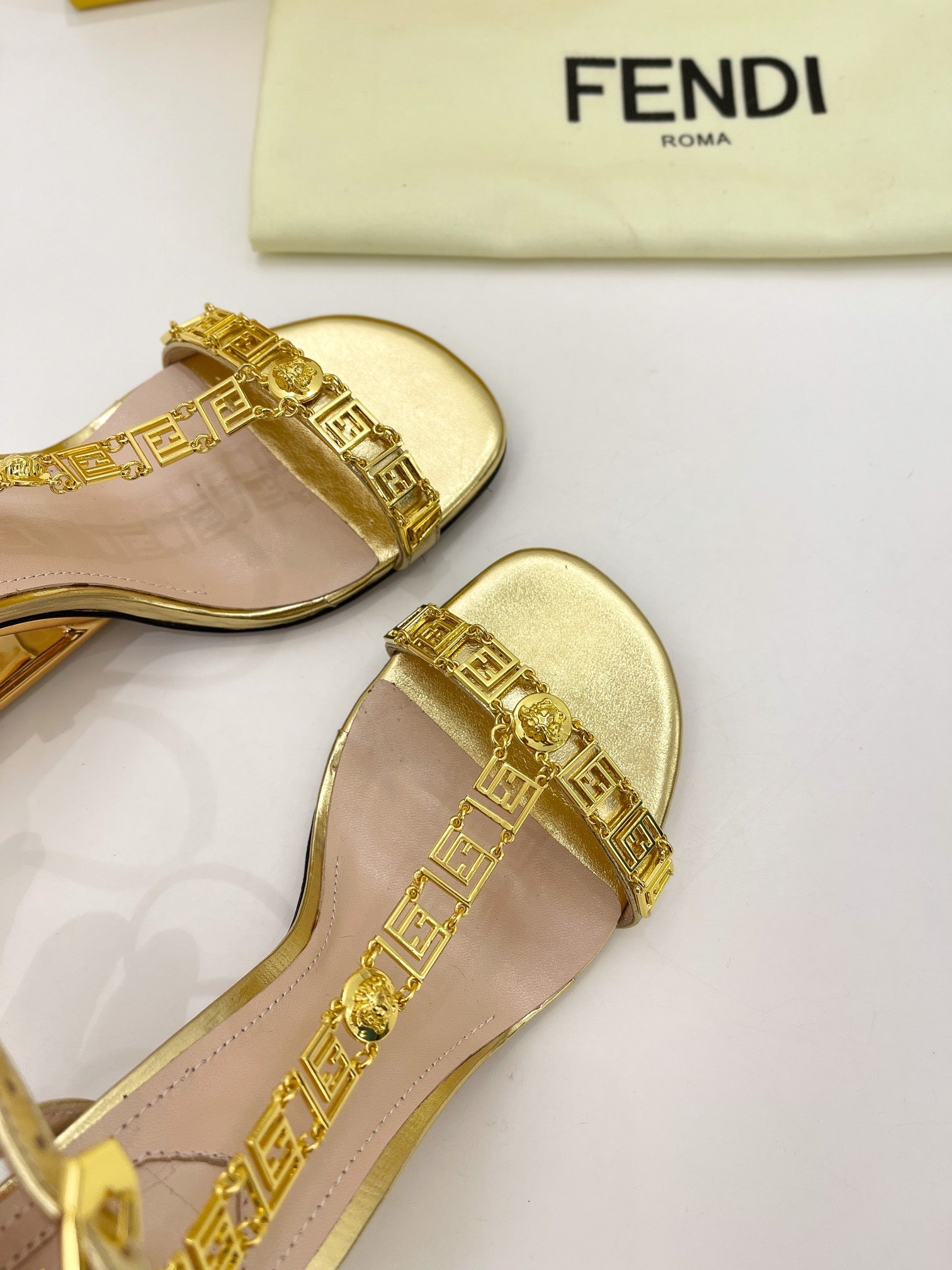 FENDI HIGH-HEELED 85 MM SANDALS IN GOLDEN LAMBSKIN WITH GOLD HARDWARE