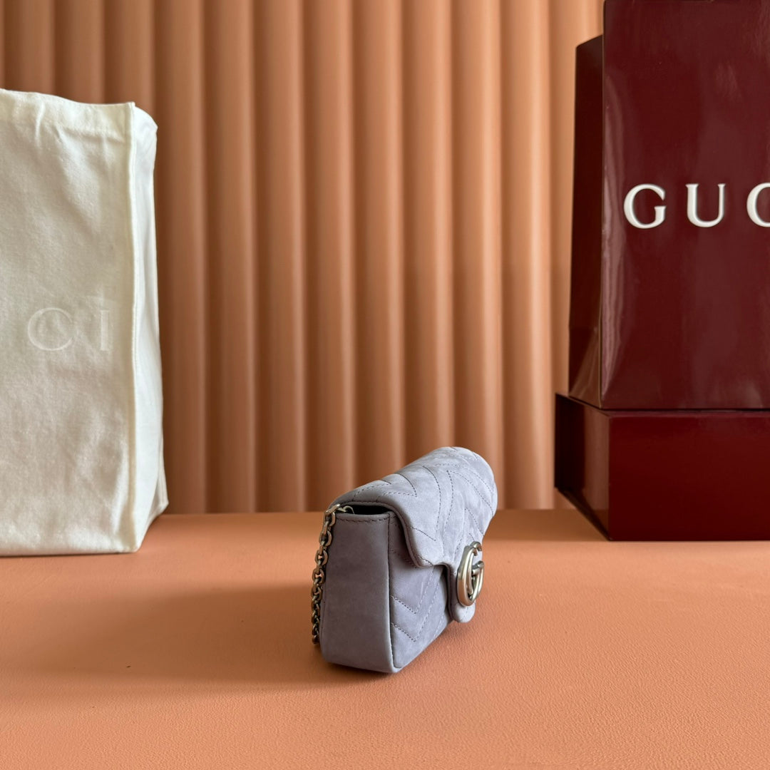 GG Marmont Double-G 16.5cm Gray Suede