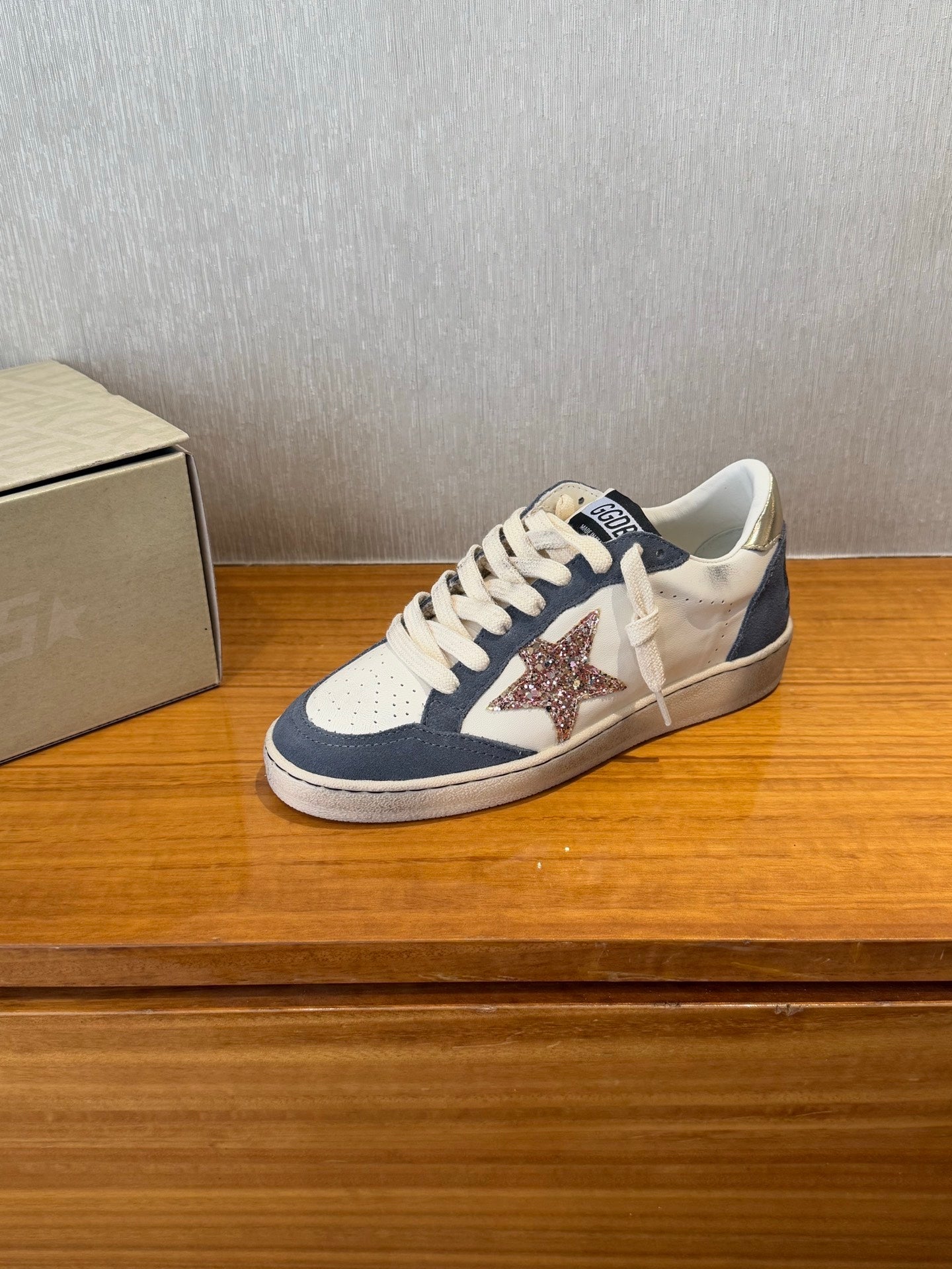 BALL STAR SNEAKERS GLITTER STAR IN BRIGHT GRAY SUEDE AND WHITE CALFSKIN