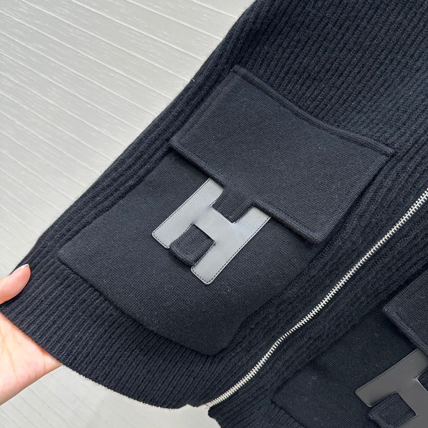 HM 25S Zipped Jacket H Leather Pockets in Black Cashmere 305011