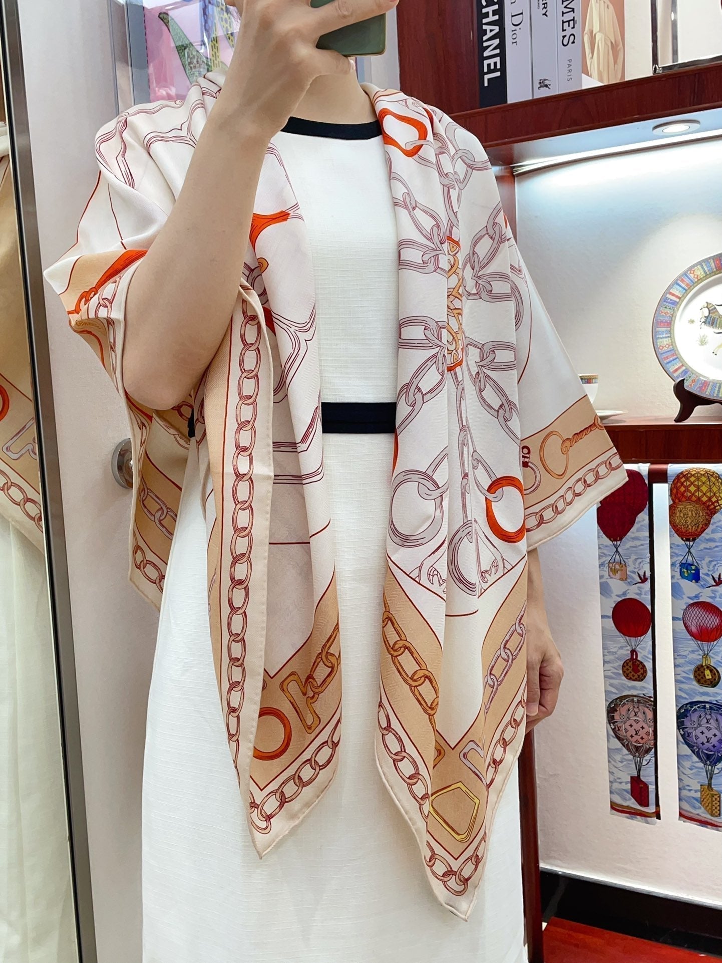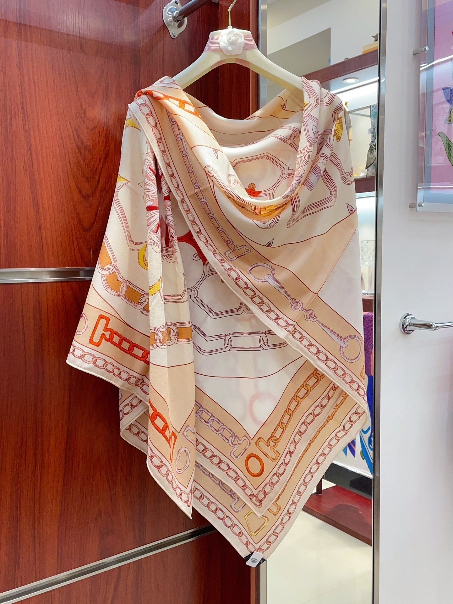 Effet Kaleidoscope Shawl 135 CM In Beige Colorful Cashmere And Silk 382610