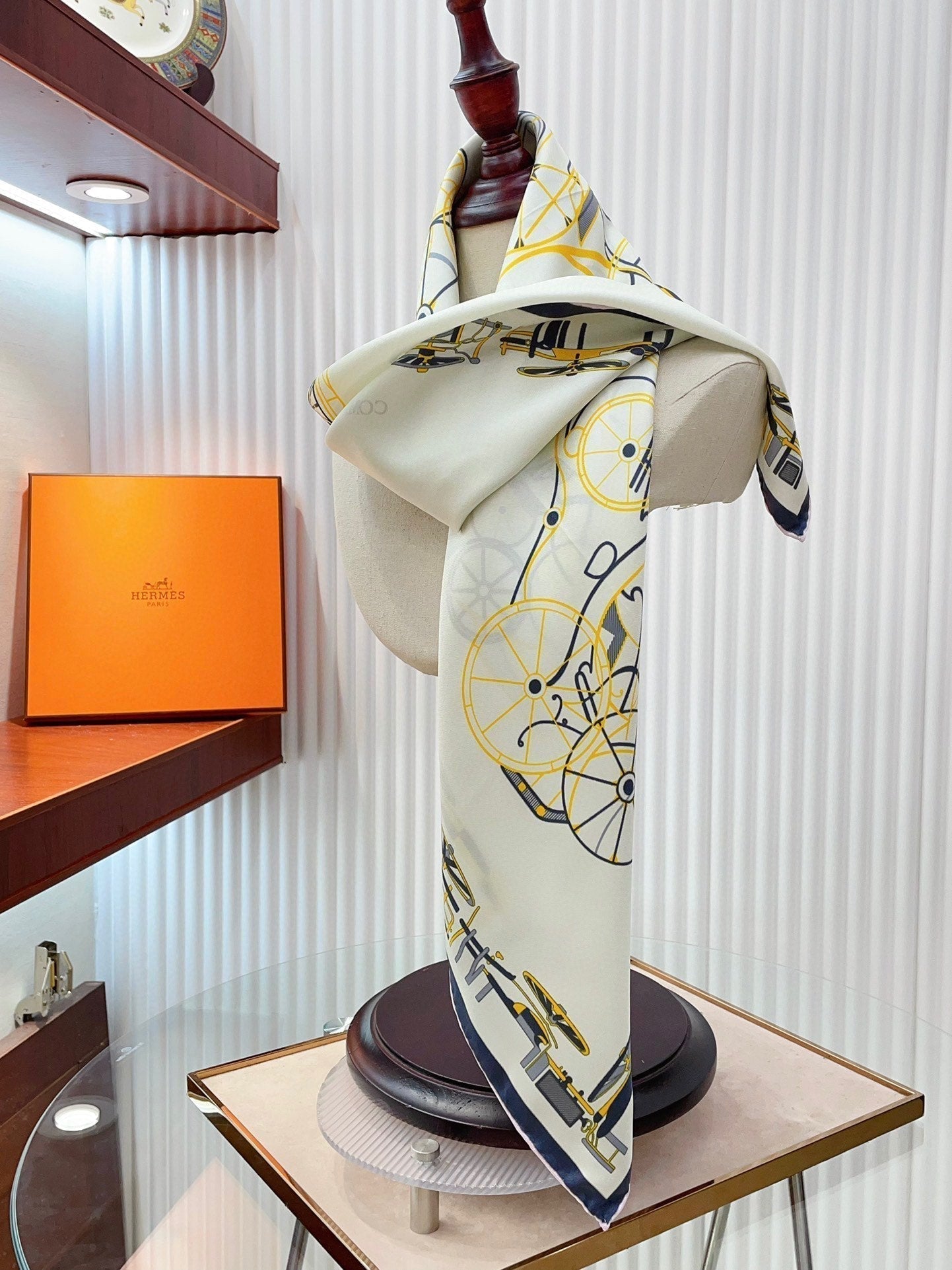 Complication Equestre Scarf 90 CM In White Yellow Coloful Silk Twill 345898
