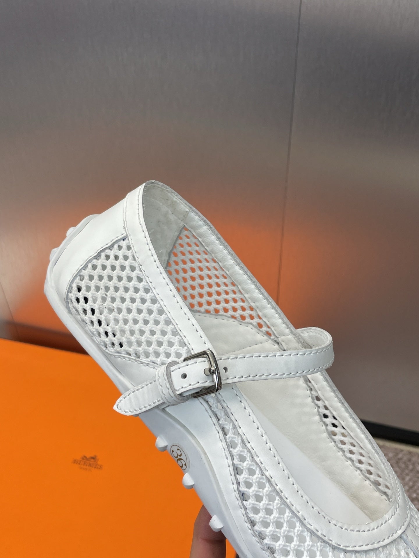 HM 25C Kichu Ballet Flat White Fabric with Calfskin 208284
