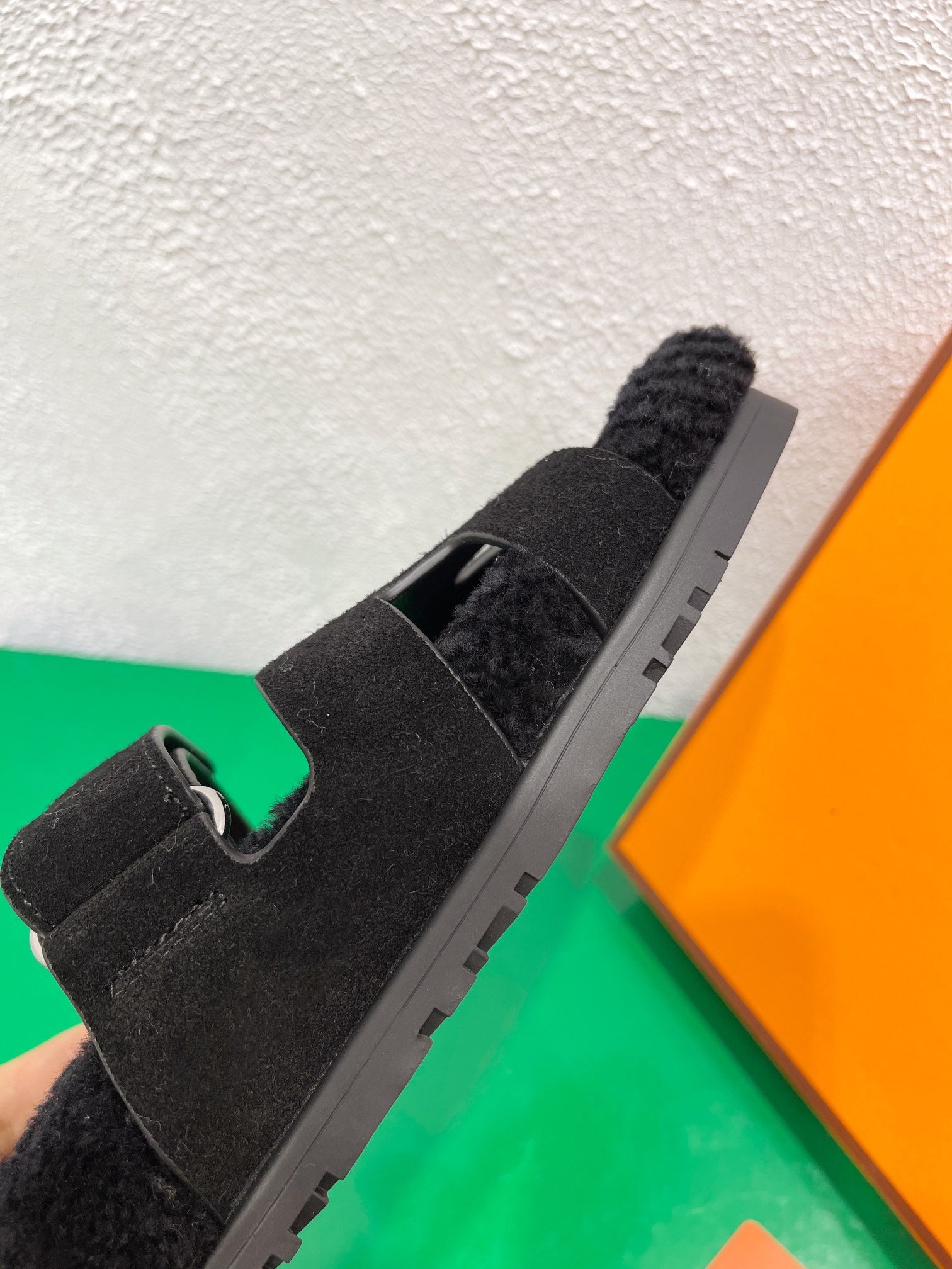 Chypre Sandal Black shearling insole Black Velvet leather lining