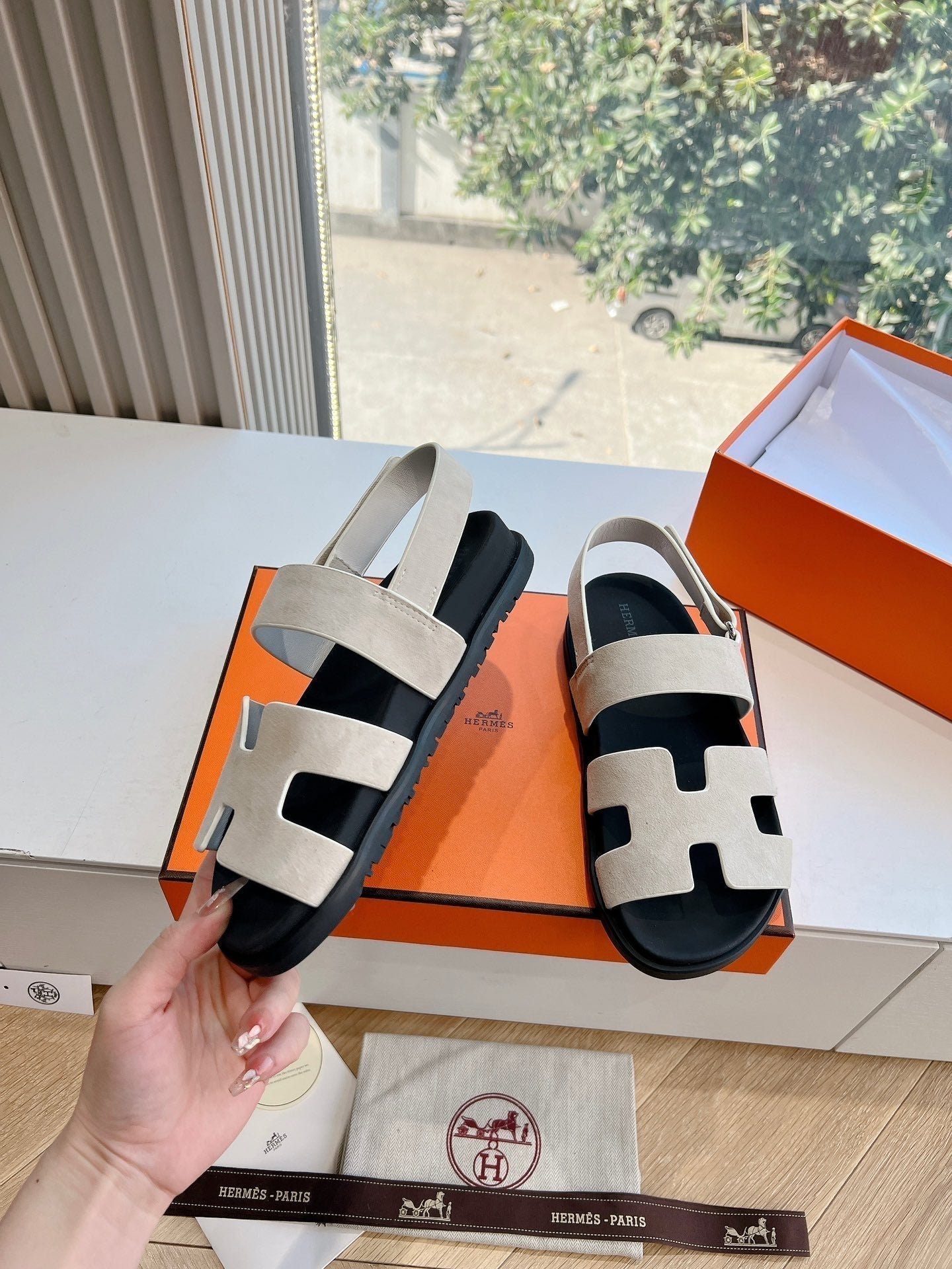 HM 25 Genius Sandal Grey Suede Black Calfskin