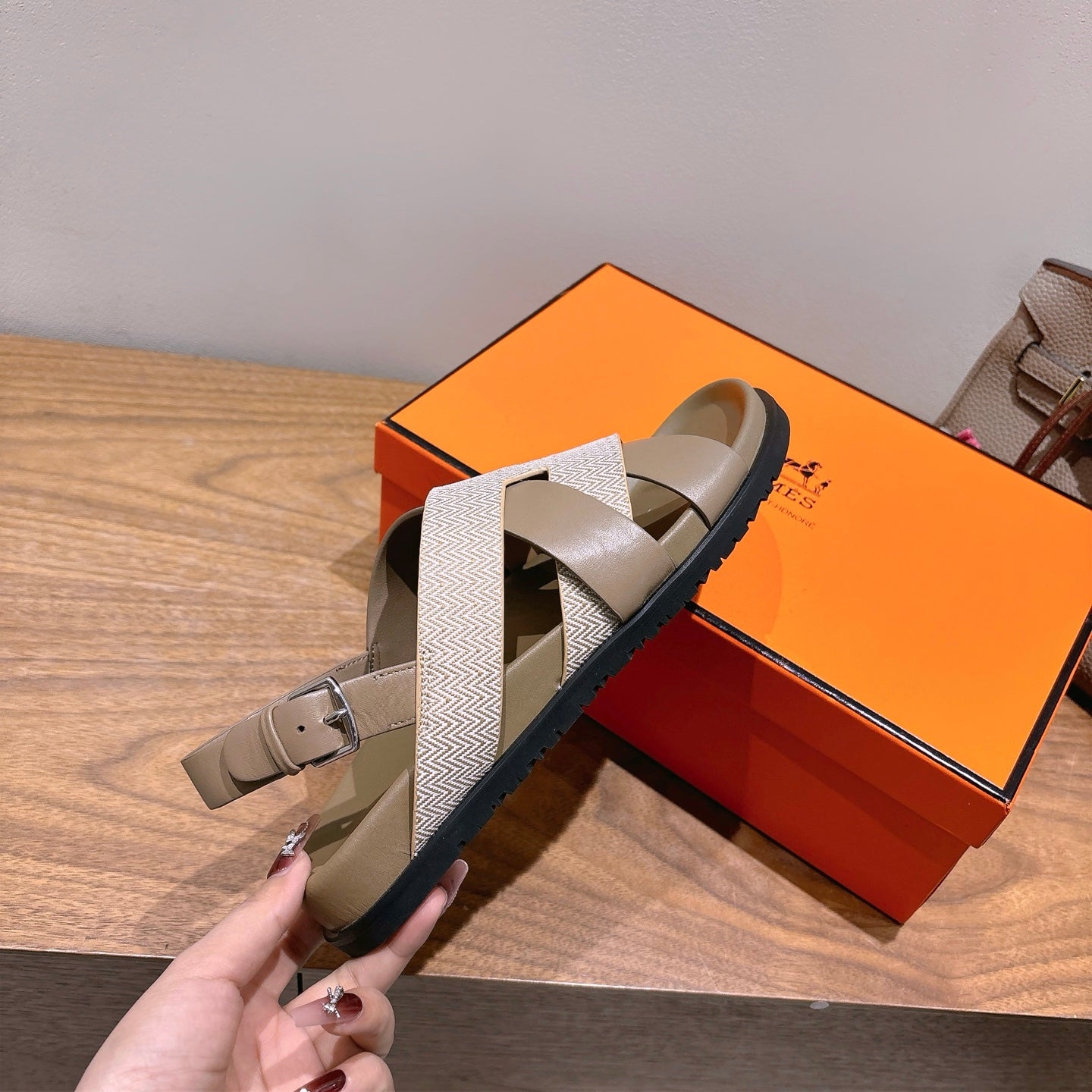 HM 25 Heracles Sandal Nude Calfskin Light Pink Canvas