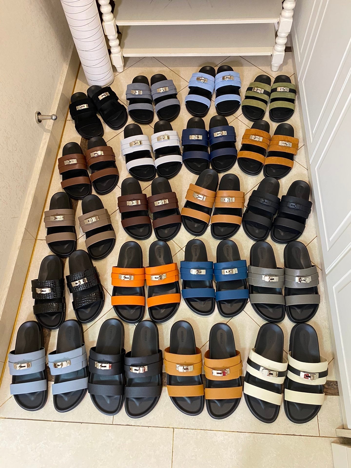 HM Jackson Sandal Black Embossed Pattern Cowhide 958028