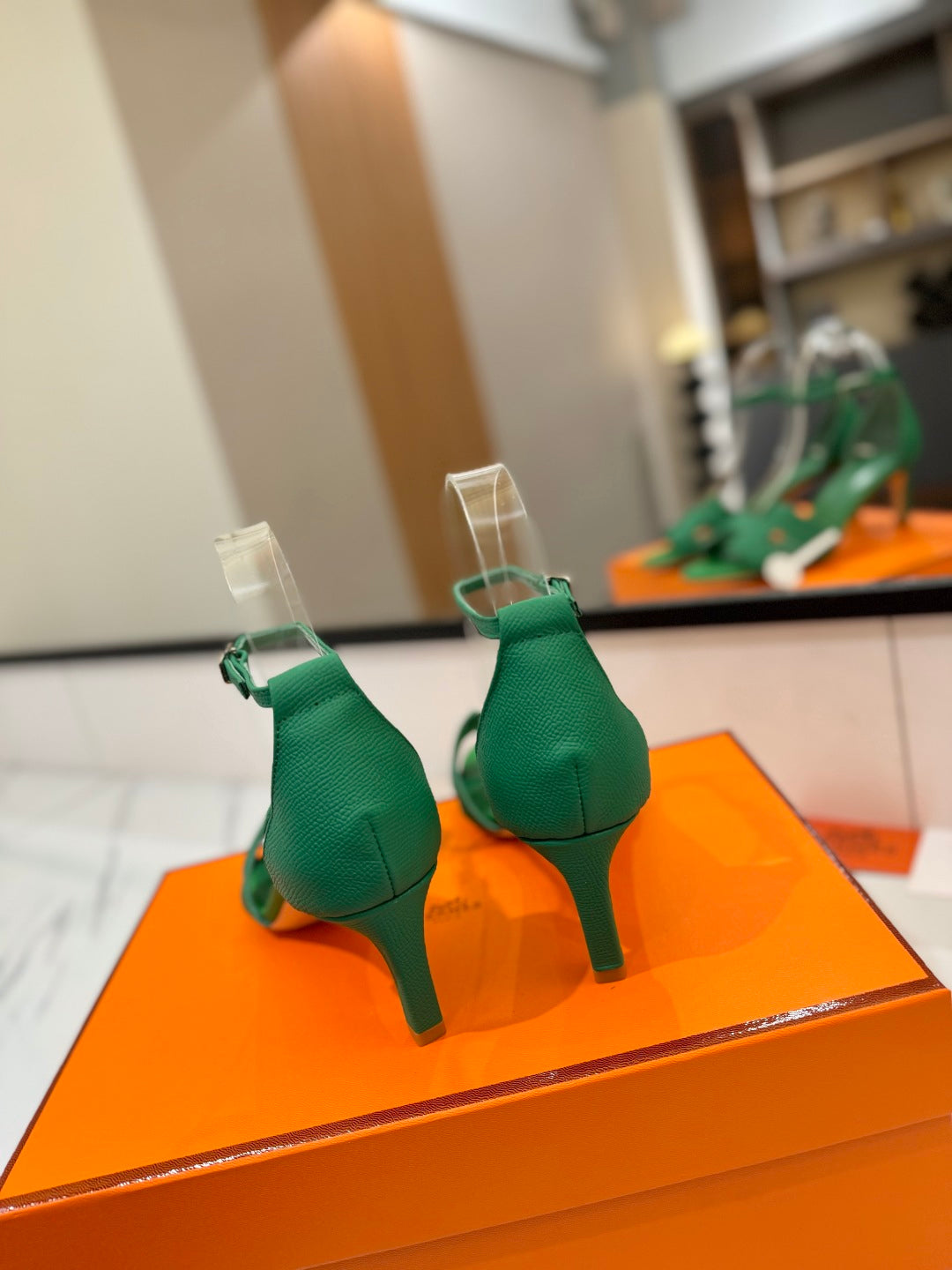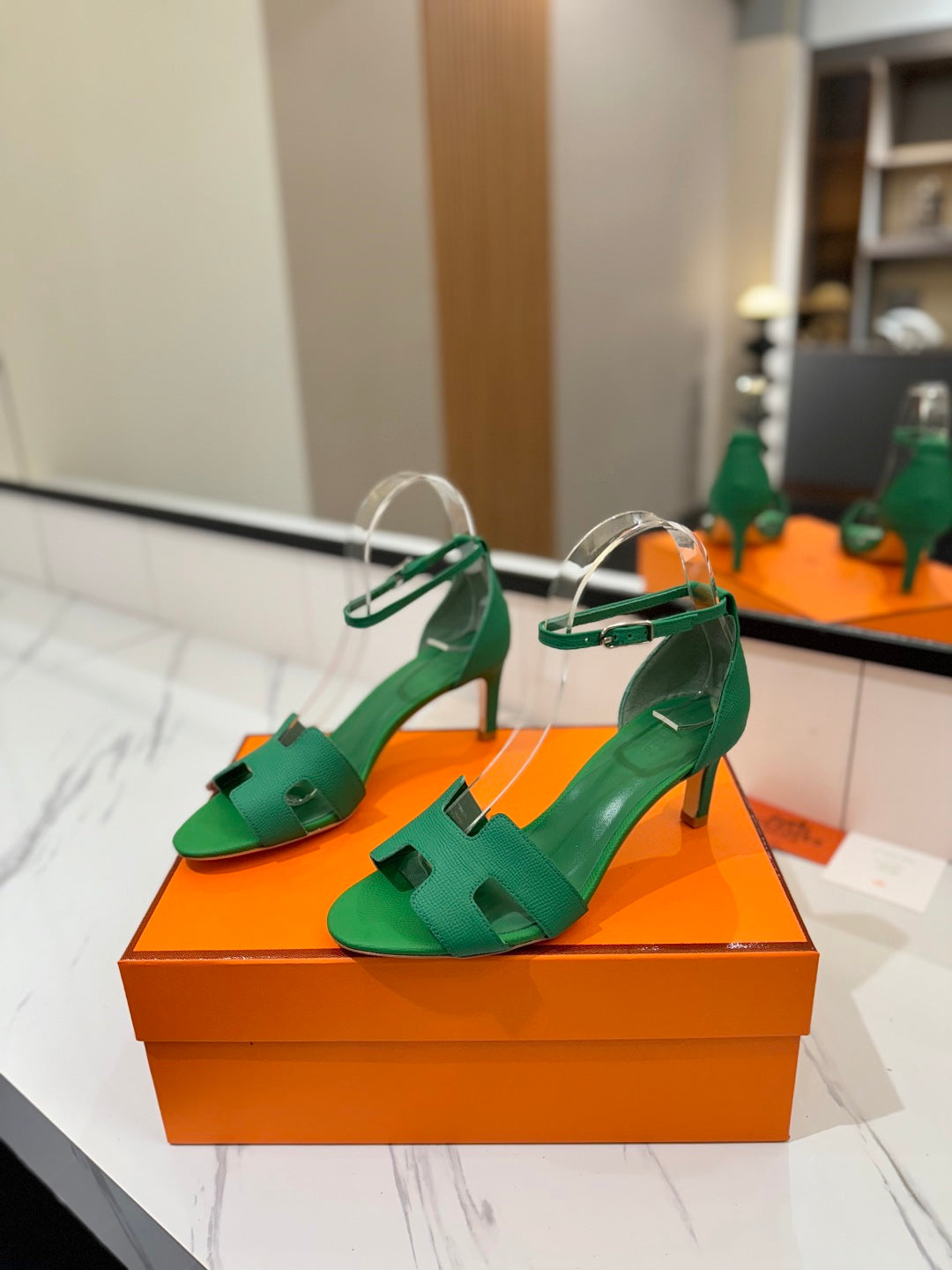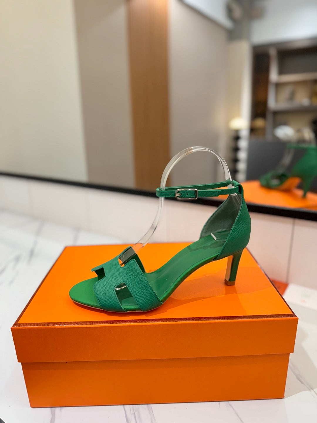 HM Joy 65mm Heeled Sandals Green Cowhide 294910
