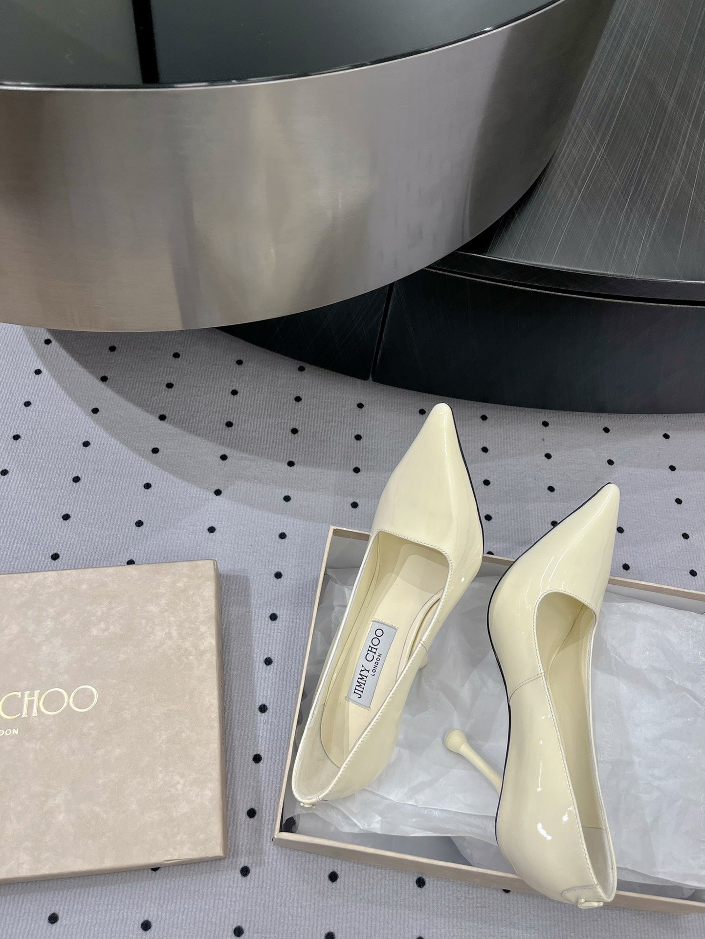 Jimmy Ixia 95 Pumps In Ivory White Glossy Cowhide 591602