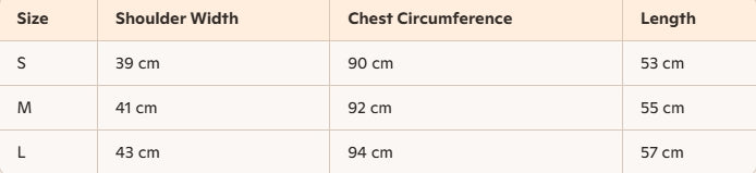 - Size : S, M, L
