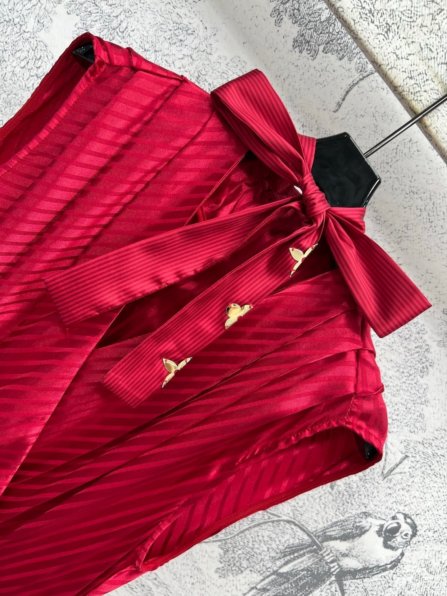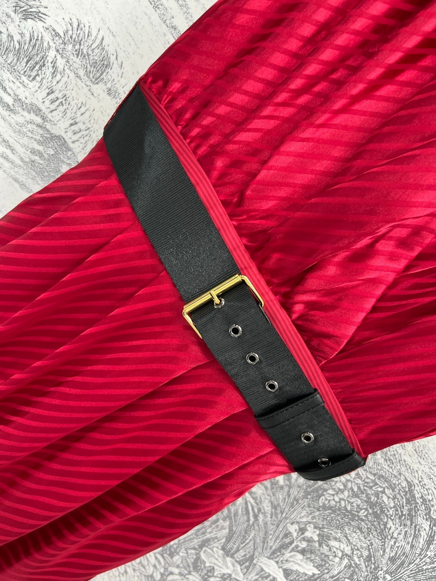 LV 25 Ped Pleated Cross Dress Red Polyester