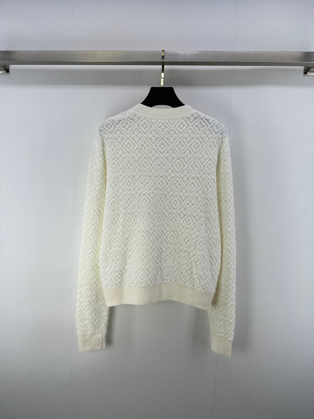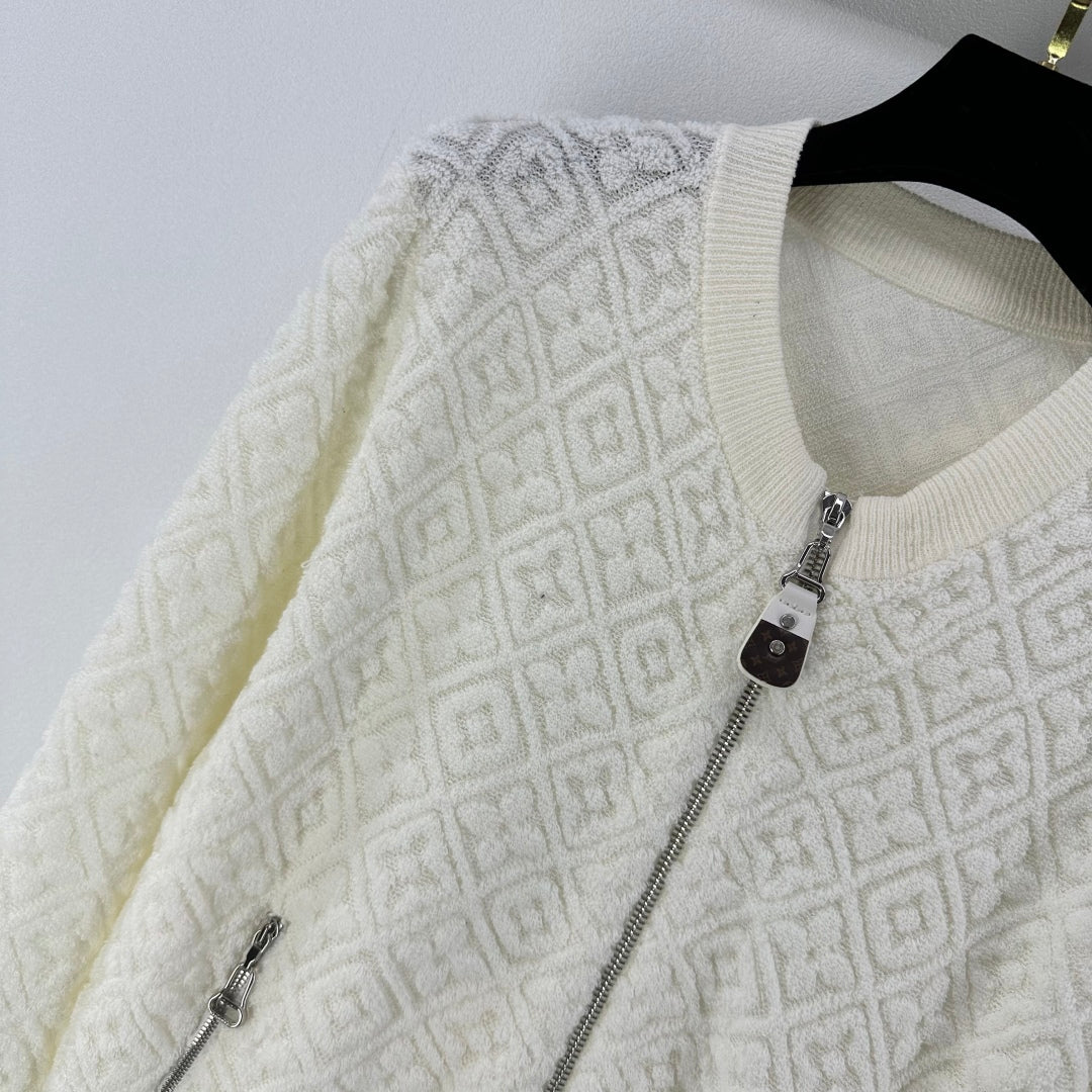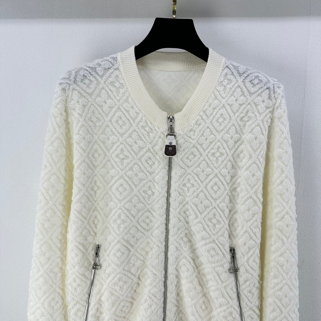 LV Embossed Long-Sleeved Cardigan in Cream Wool 271049