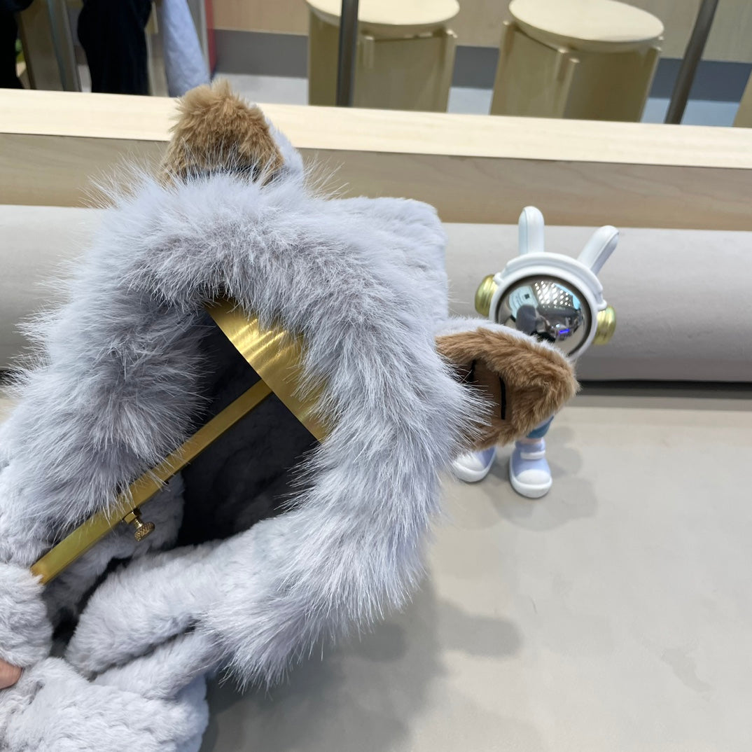 BEANIE HAT IN GRAY WOOL AND LAMB FUR 435074