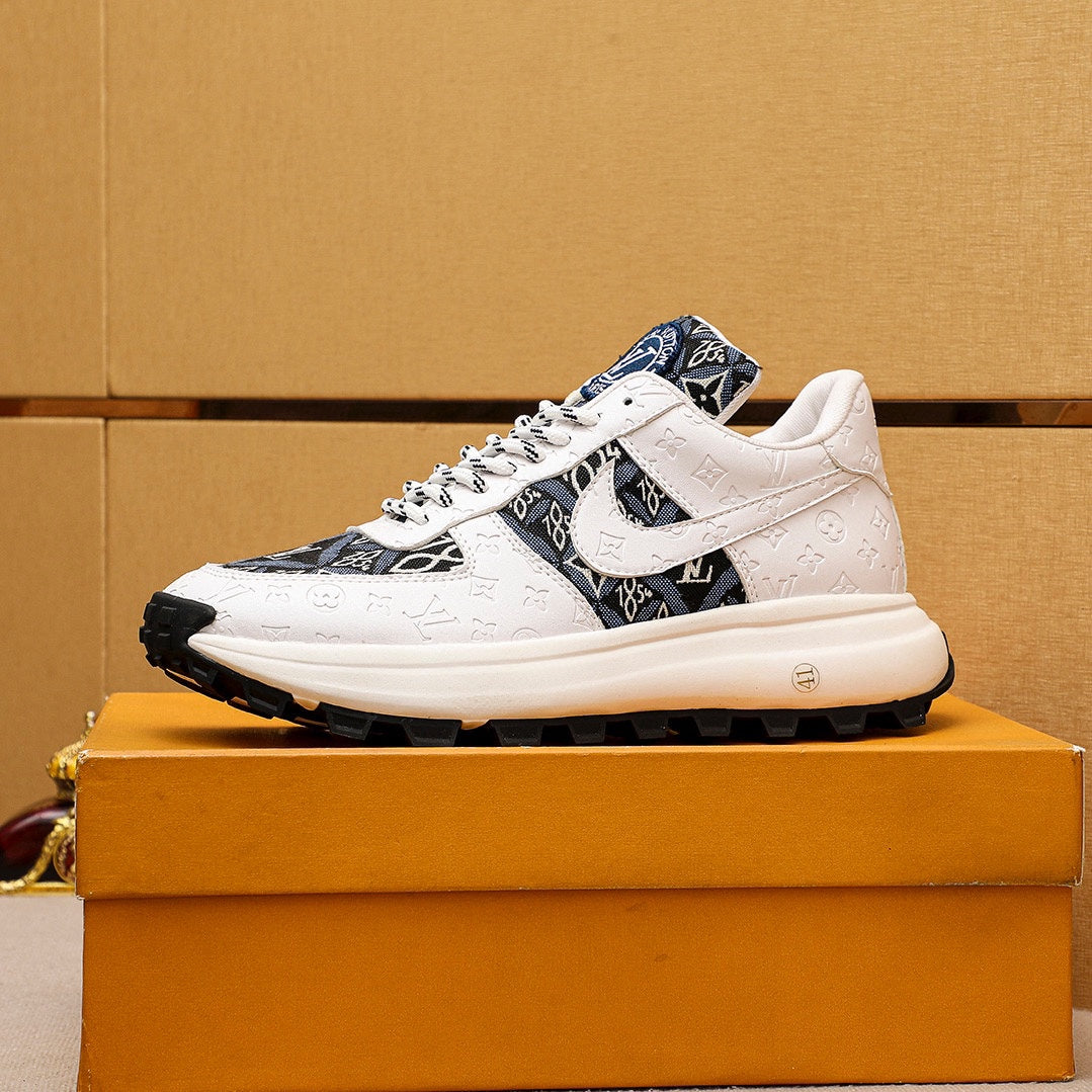 LV HIGH-END CLASSIC WHITE BLACK AND WHITE SUEDE MEN'S SHOES
