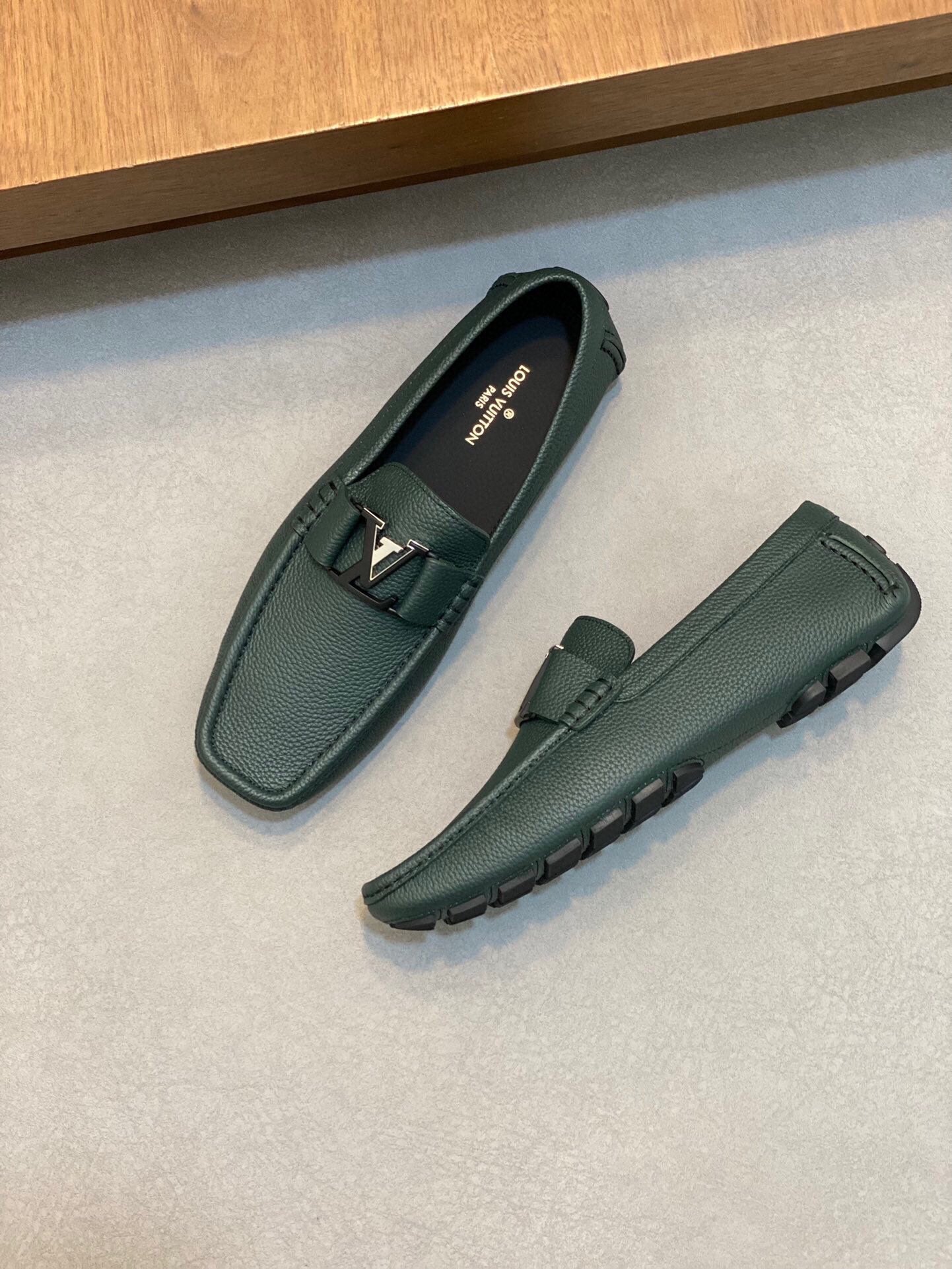 LV LOAFER IN GREEN FOREST WRINKLE CALFSKIN