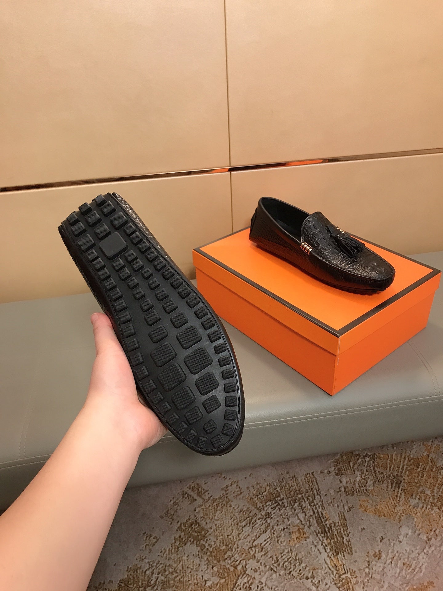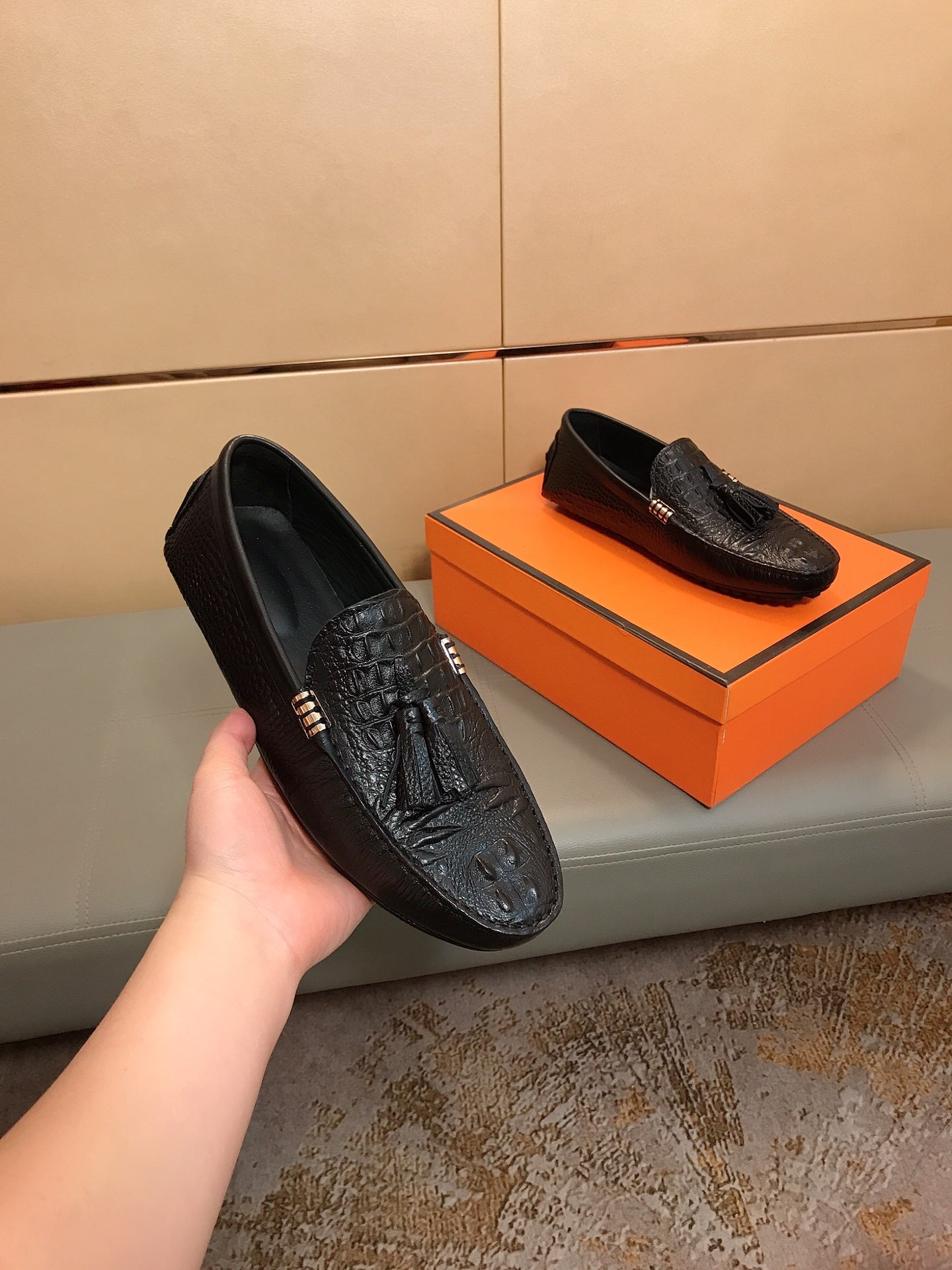 LV LOAFERS BLACK EMBOSSED CALFSKIN WITH TASSEL