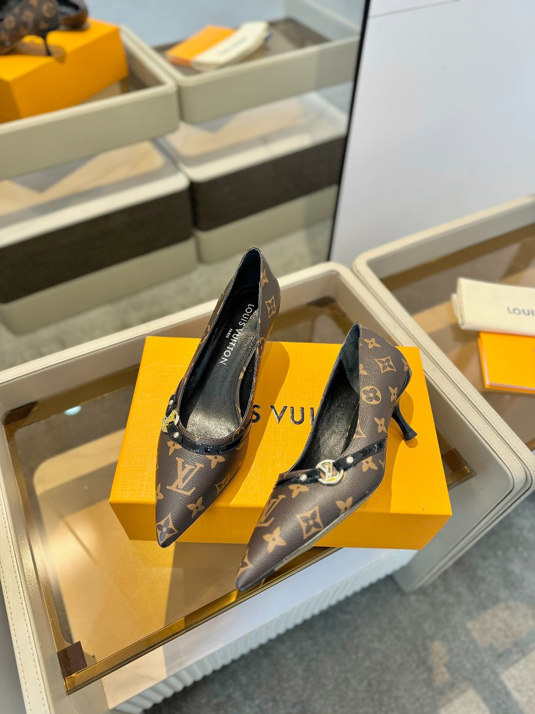 6AM 5.5cm Brown Monogram Canvas and Patent Leather Pumps 241203
