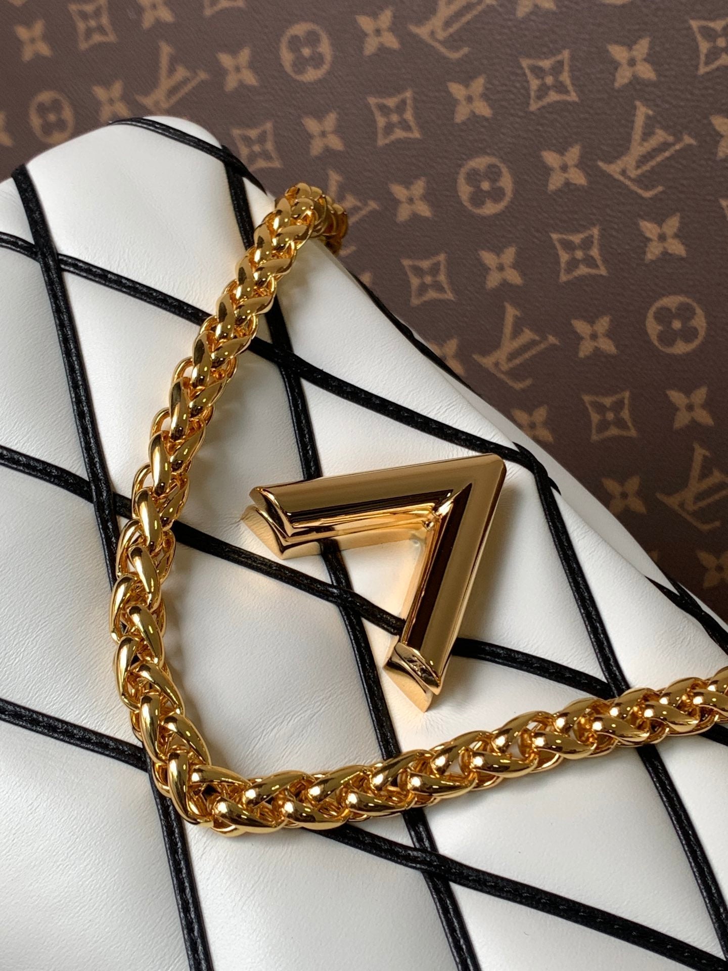 LV M22890 GO-14 MM 23cm Black White Lambskin GHW