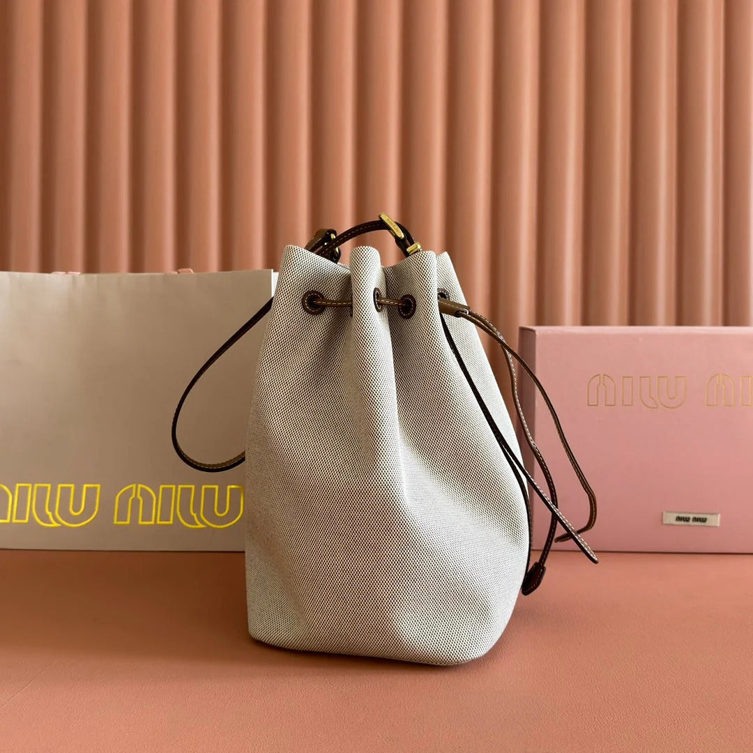 BUCKET BAG 29 BEIGE AND BRANDY IN CANVAS