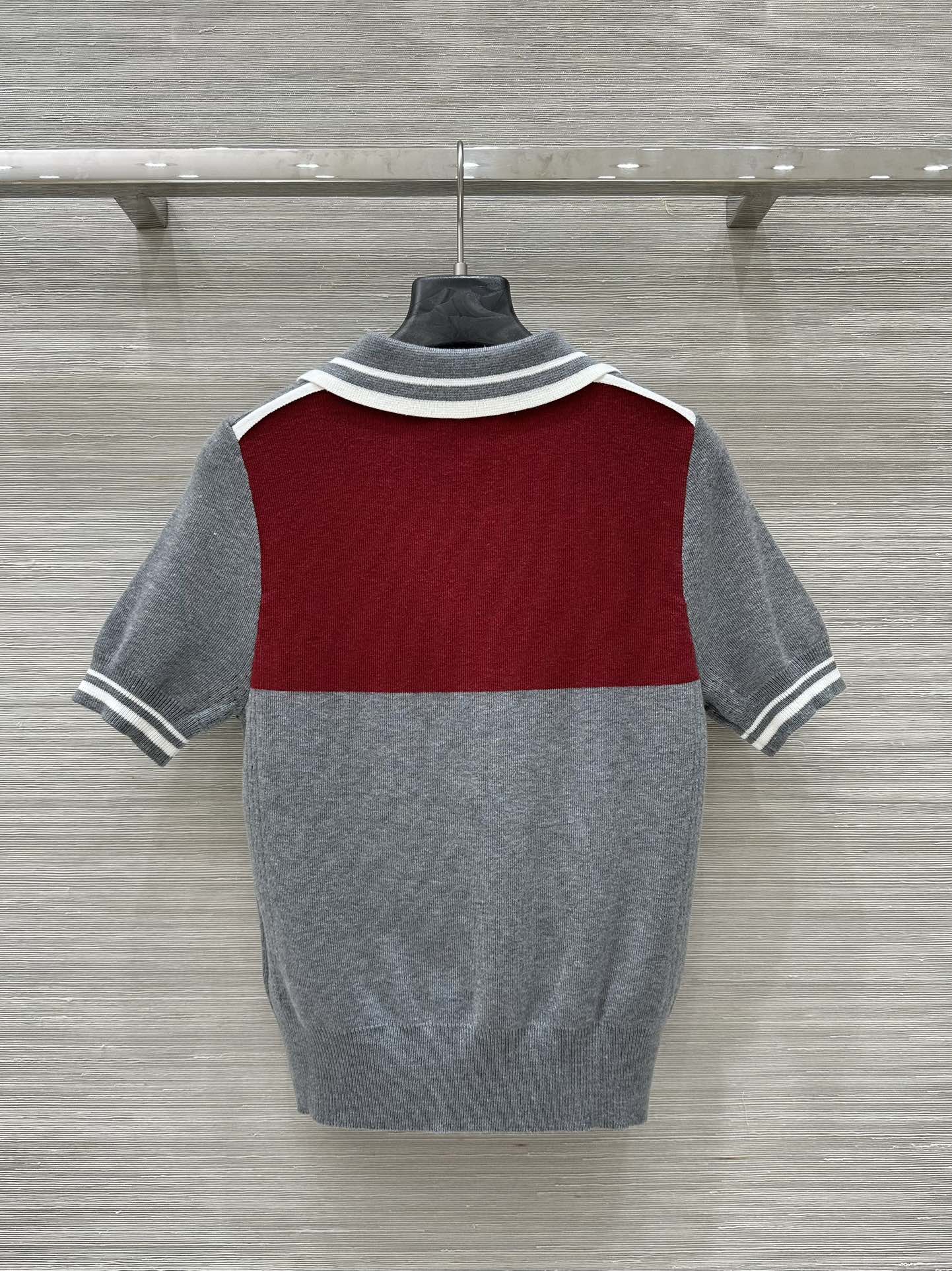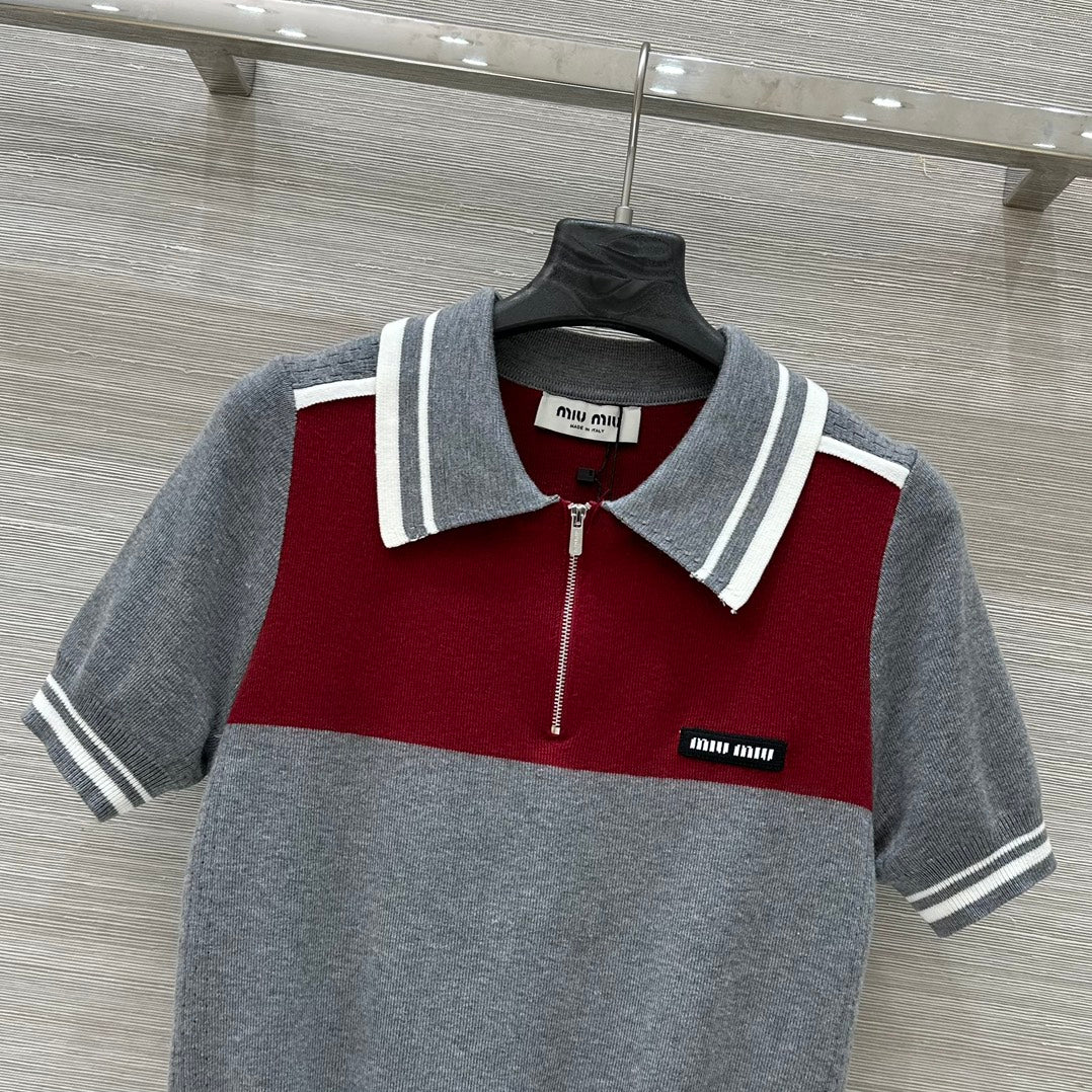 Miu Miu 25 Polo Collar Short-sleeved Top Gray red Tencel