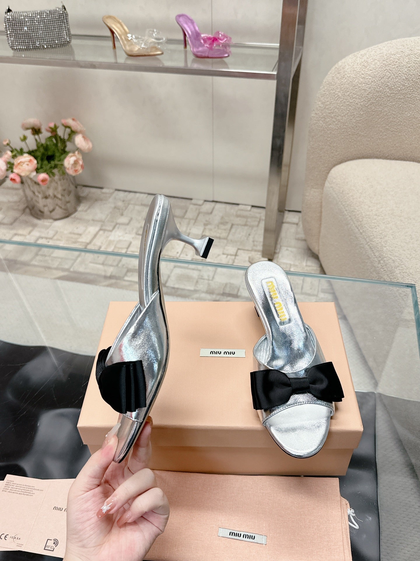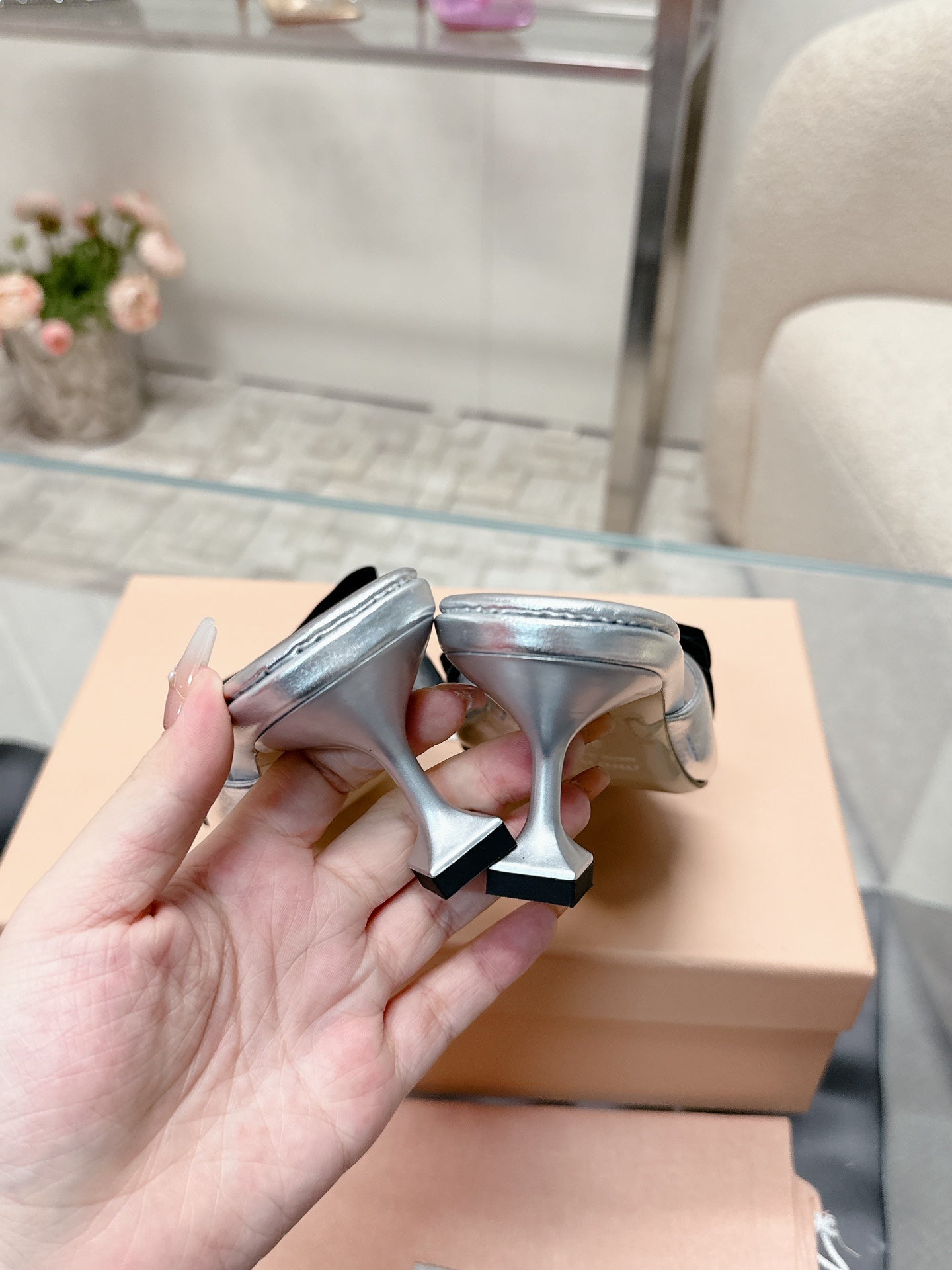 Miu Mordoré Black Bows Mules 50mm Sliver Cowhide 445519