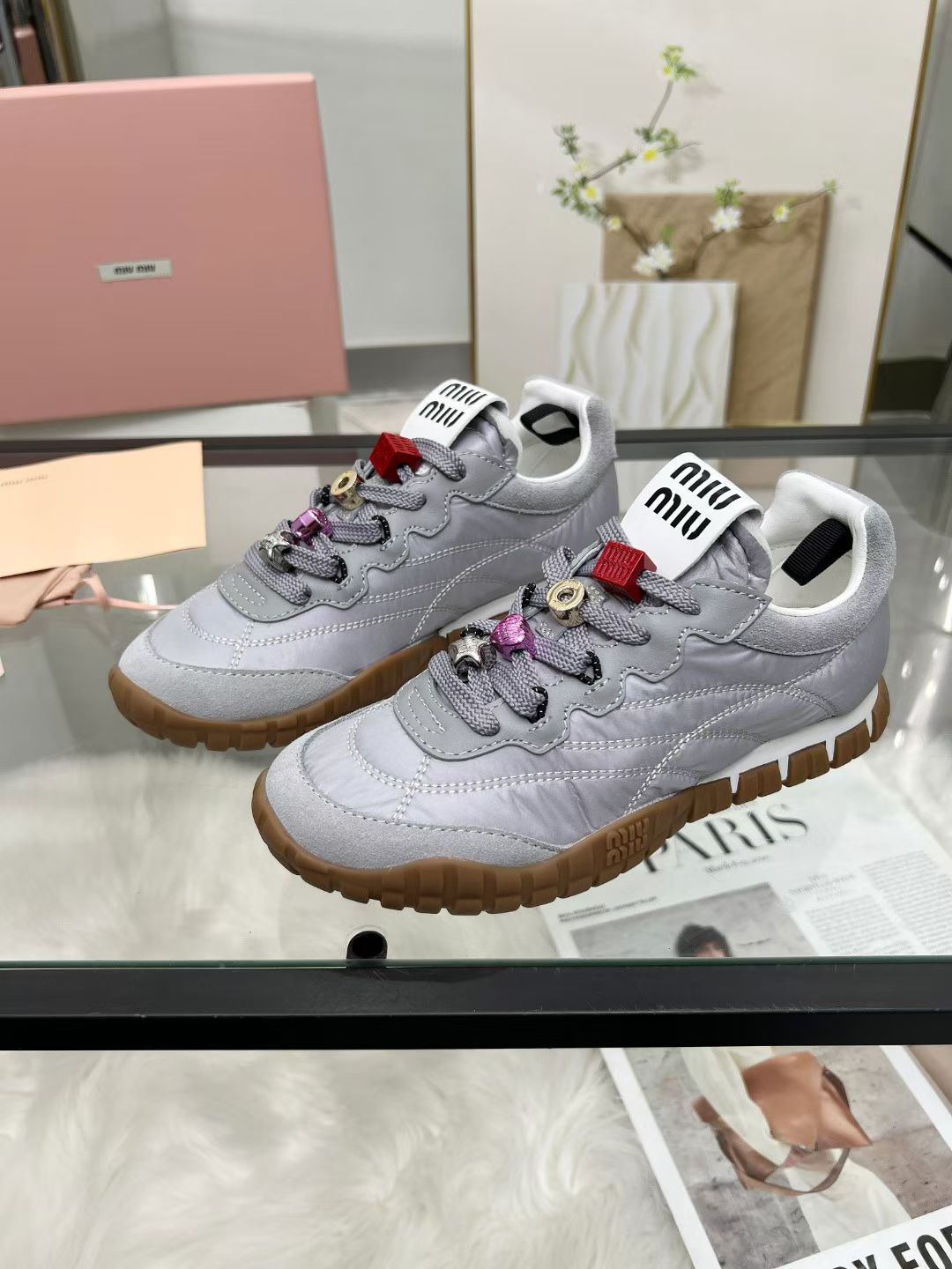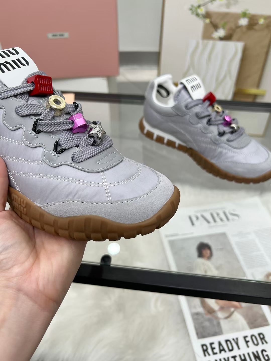 Miu TYRE Sneakers with Decorative Buckle Grey Suede Technical Fabric 456338