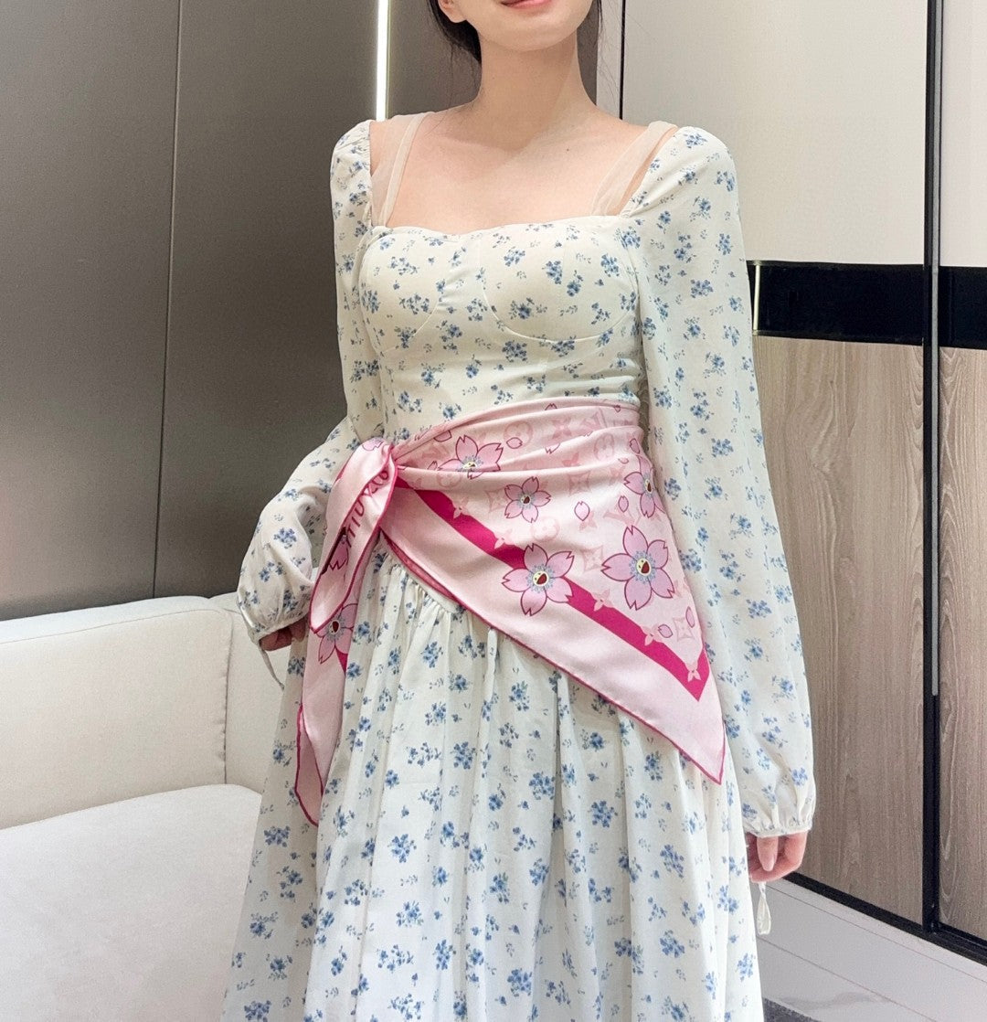 LV x TM MONOGRAM CHERRY BLOSSOM DOUBLE-SIDED PINK SILK SCARF 839488