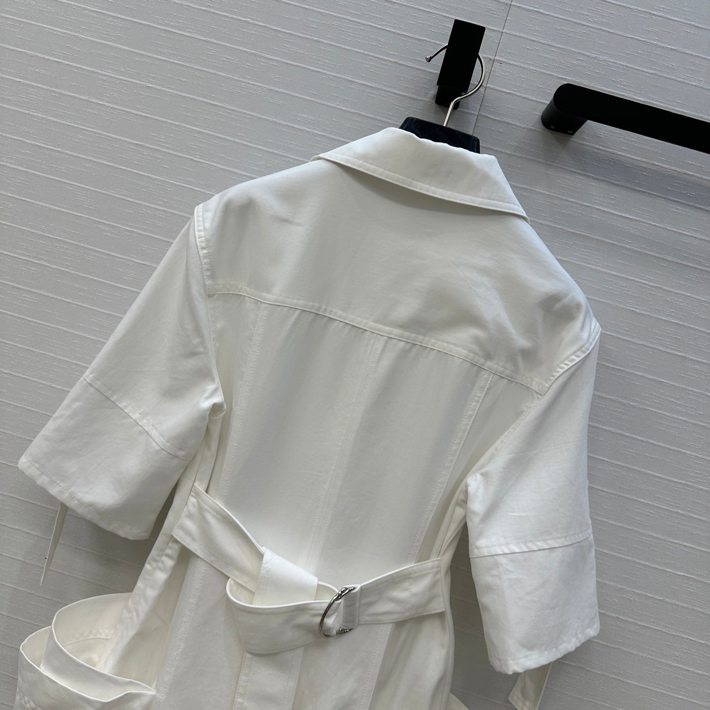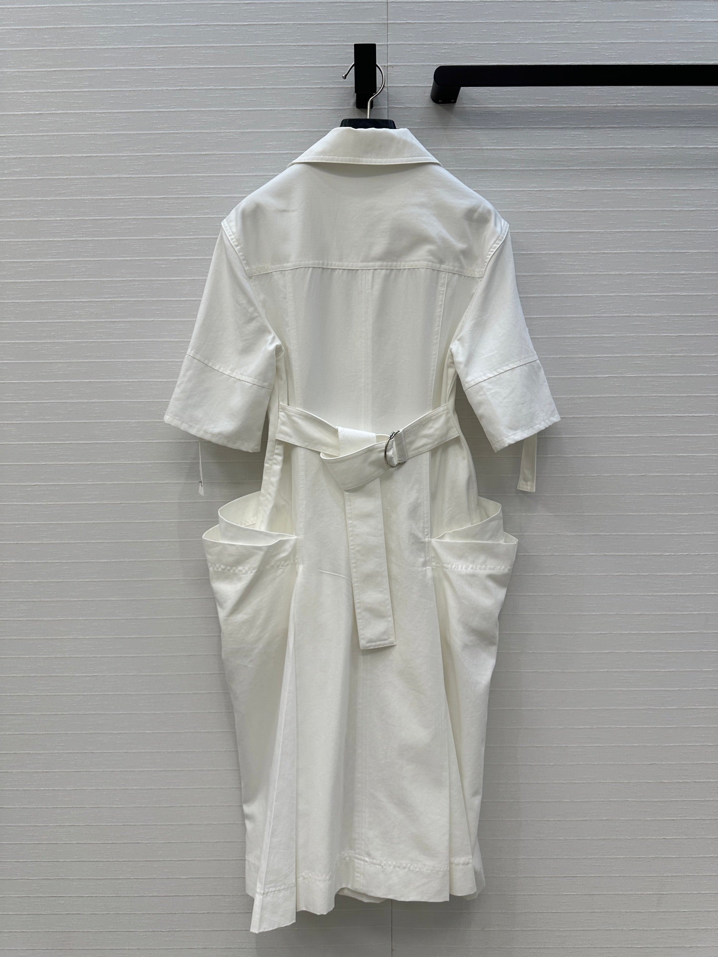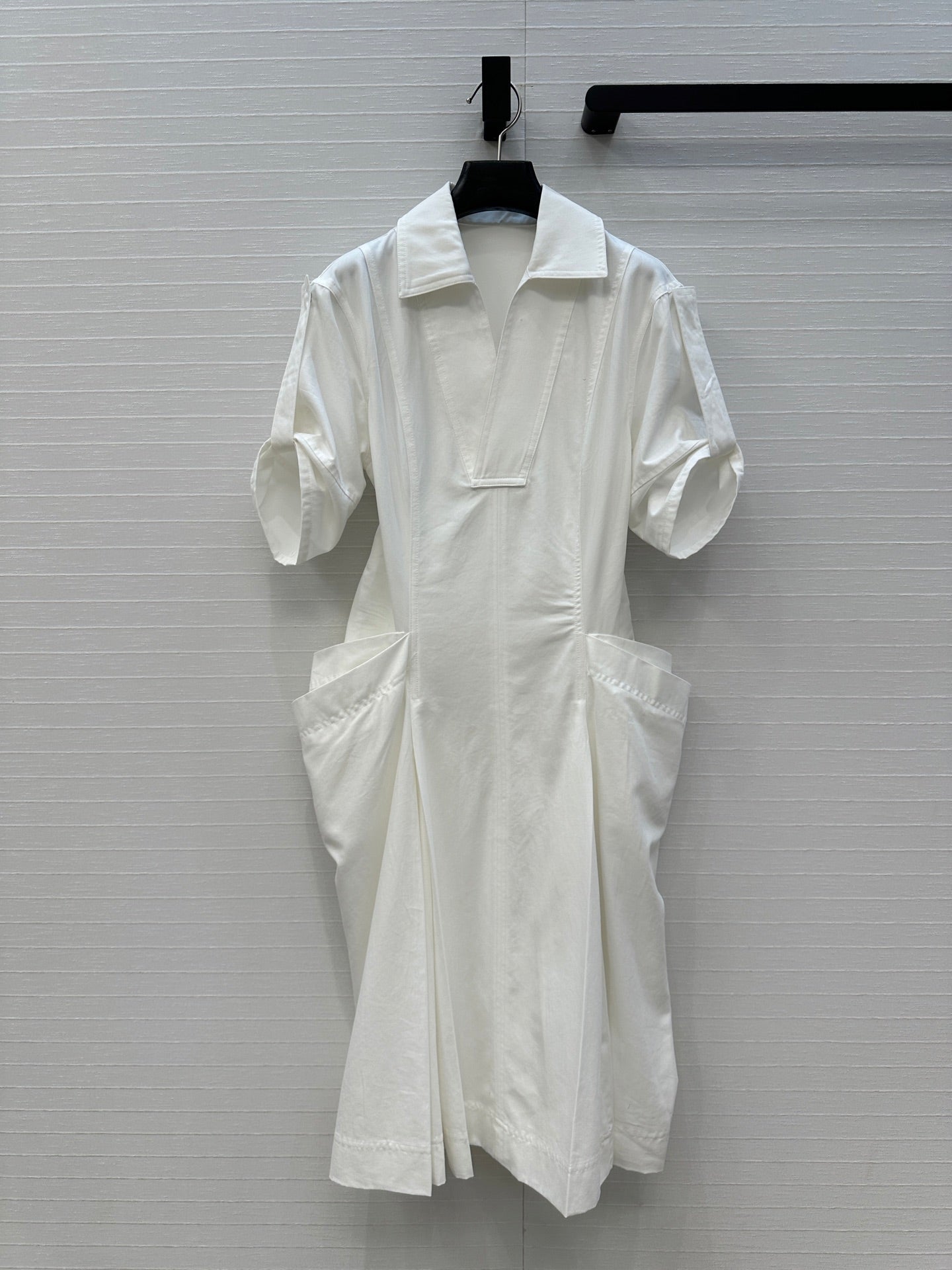 BV V-neck Rolled-Up Sleeve Dress in White Tencel