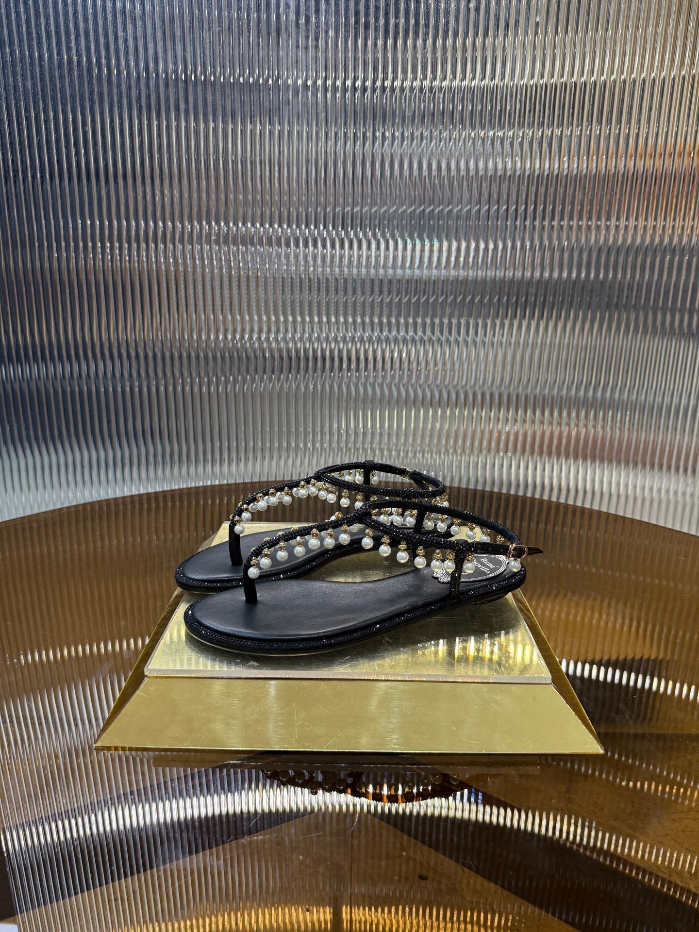 RC 25C Thong Diamond Flat Sandals Black Silk Rhinestone 275773