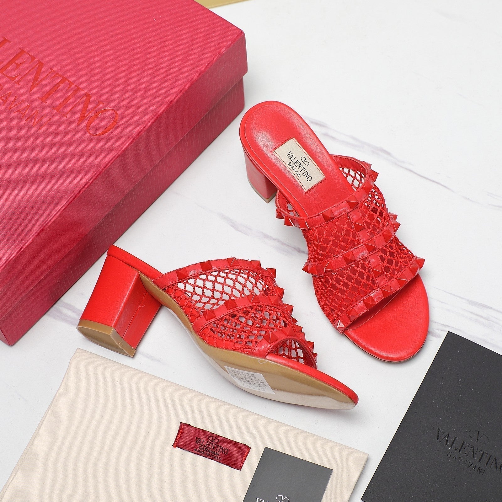 WOMEN'S BLACK ROCKSTUD CHERRY RED MESH SLIDER SANDAL WITH MATCHING STUDS 65 MM