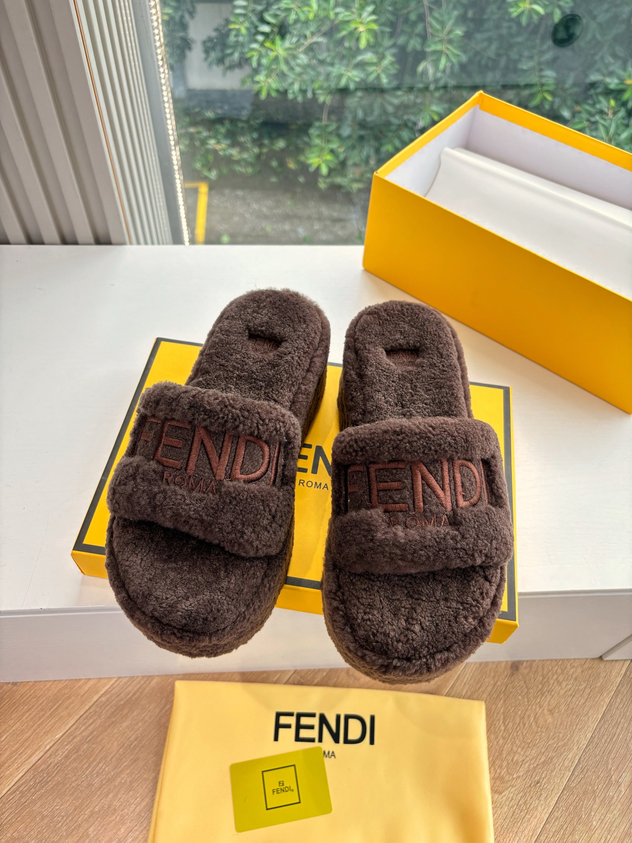 Fendi 25ss Slippers Dark Brown Wool 507102