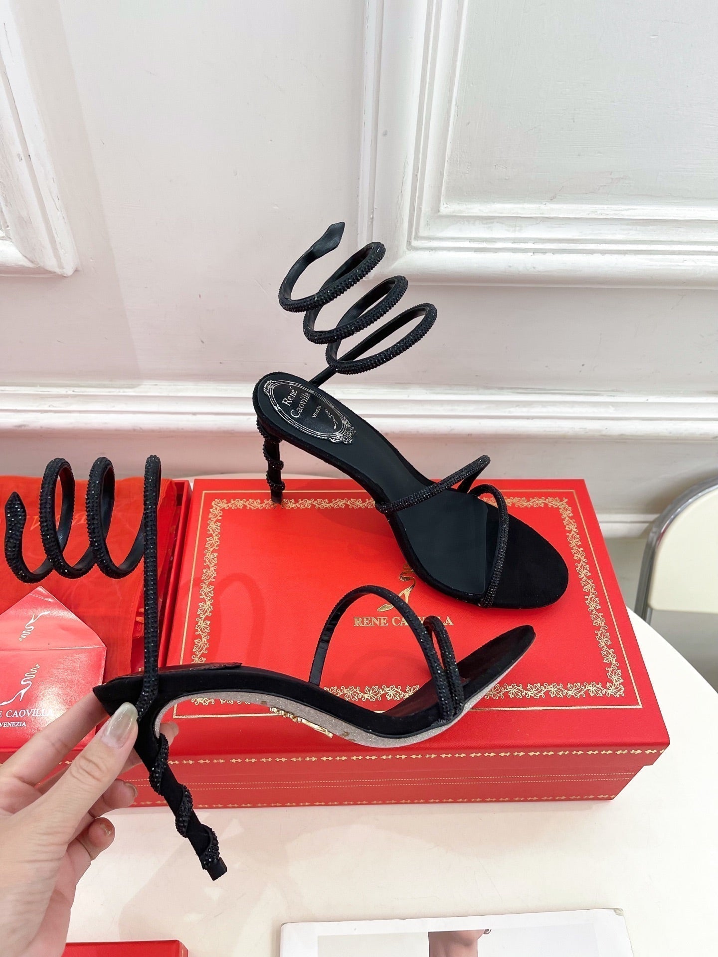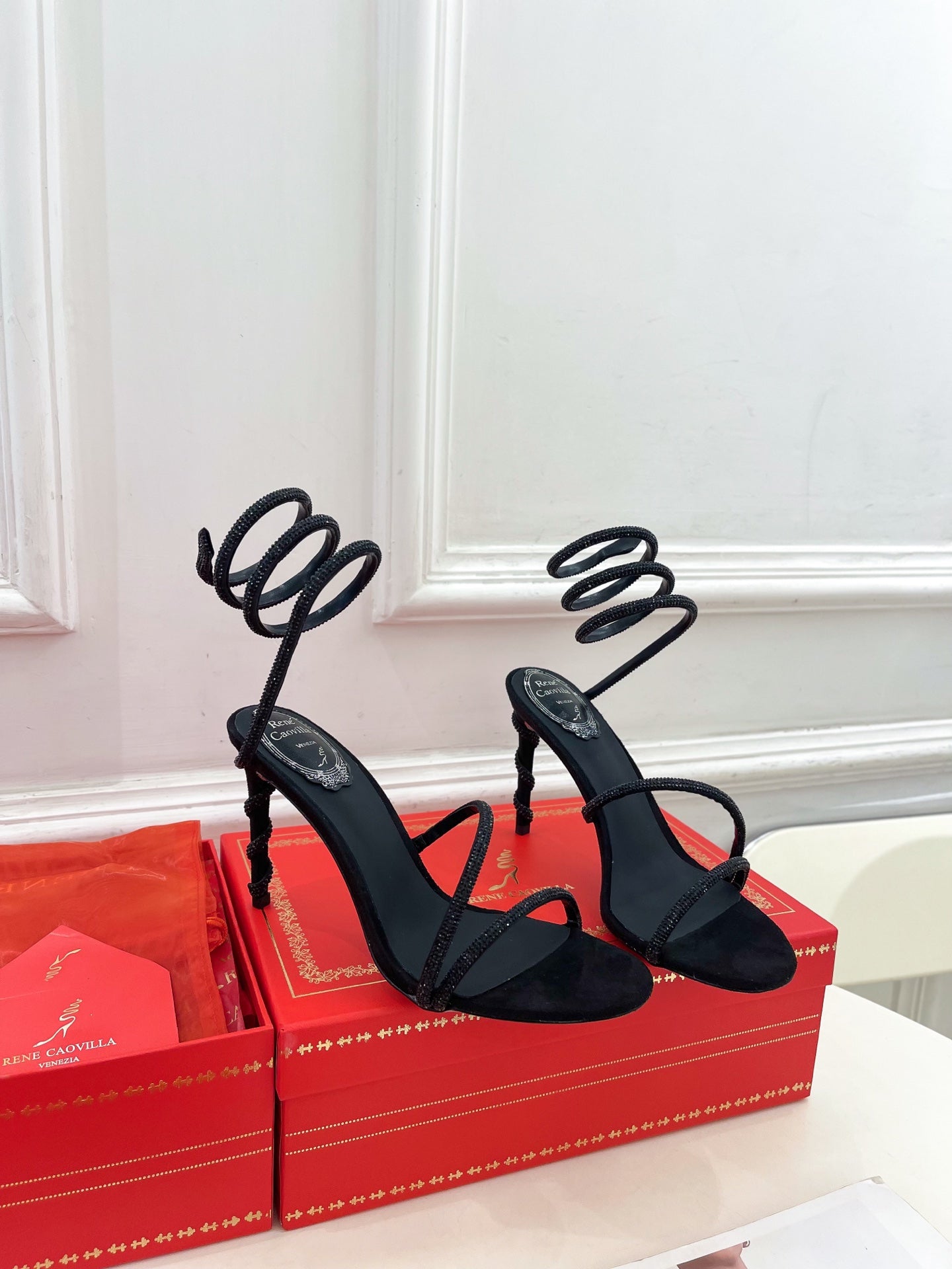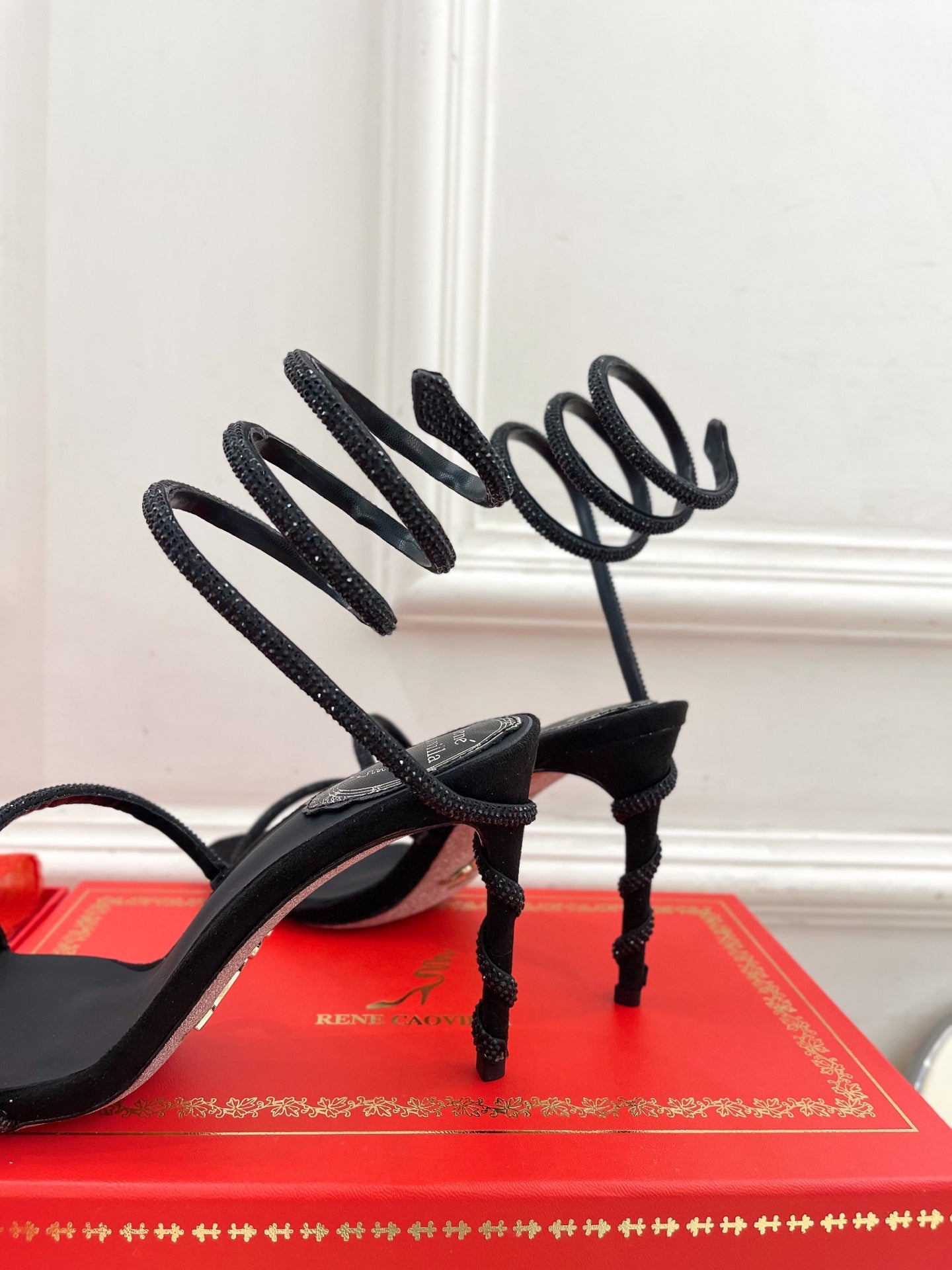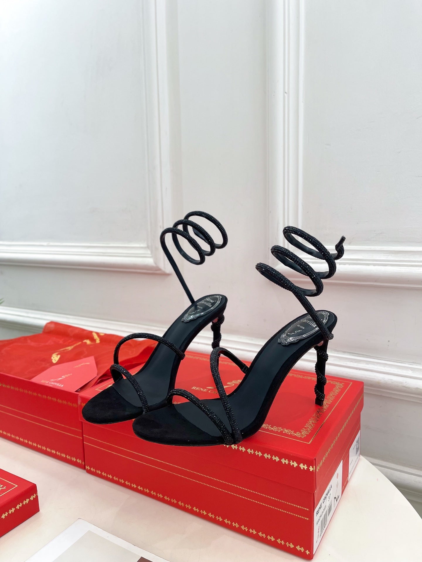 RC 25 Crystal Diamond Snake-Shaped High-Heeled Black Silk Rhinestones 253542