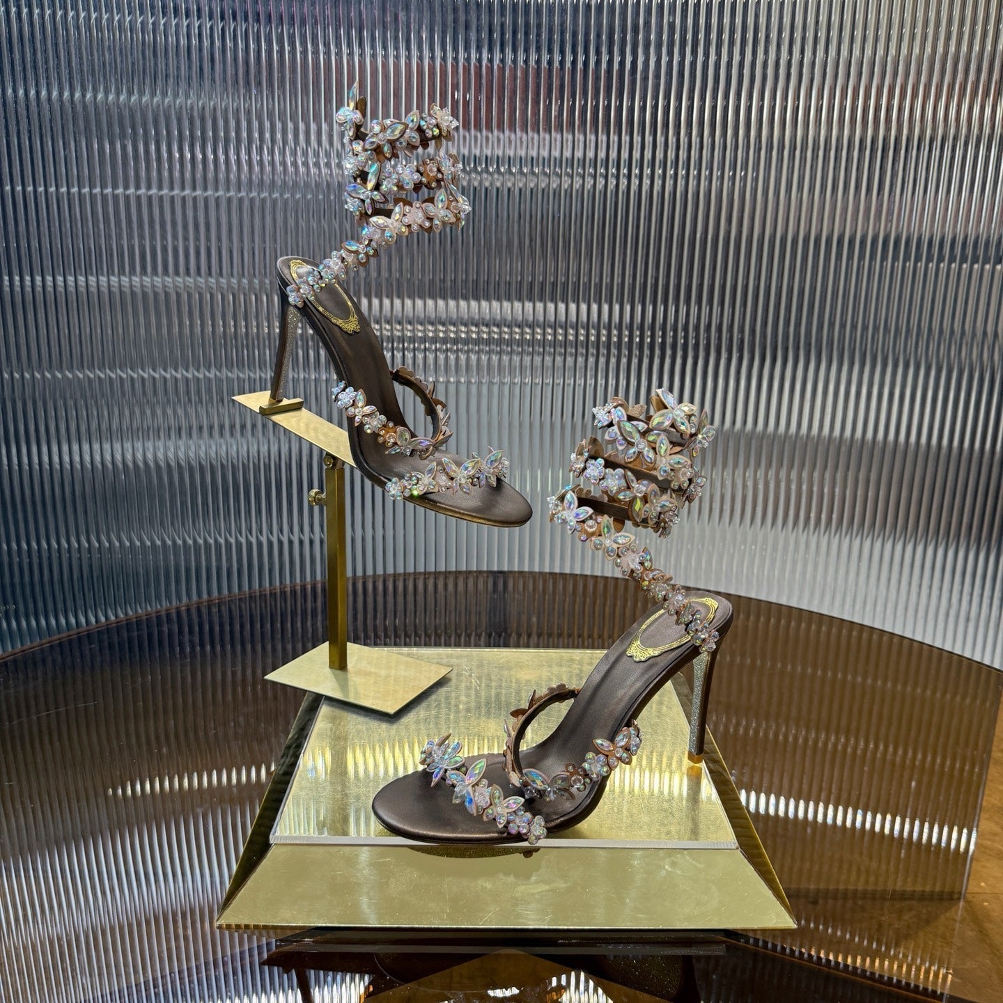 RC 25C Butterfly Flower Sandals Brown Sheepskin Rhinestones 310660