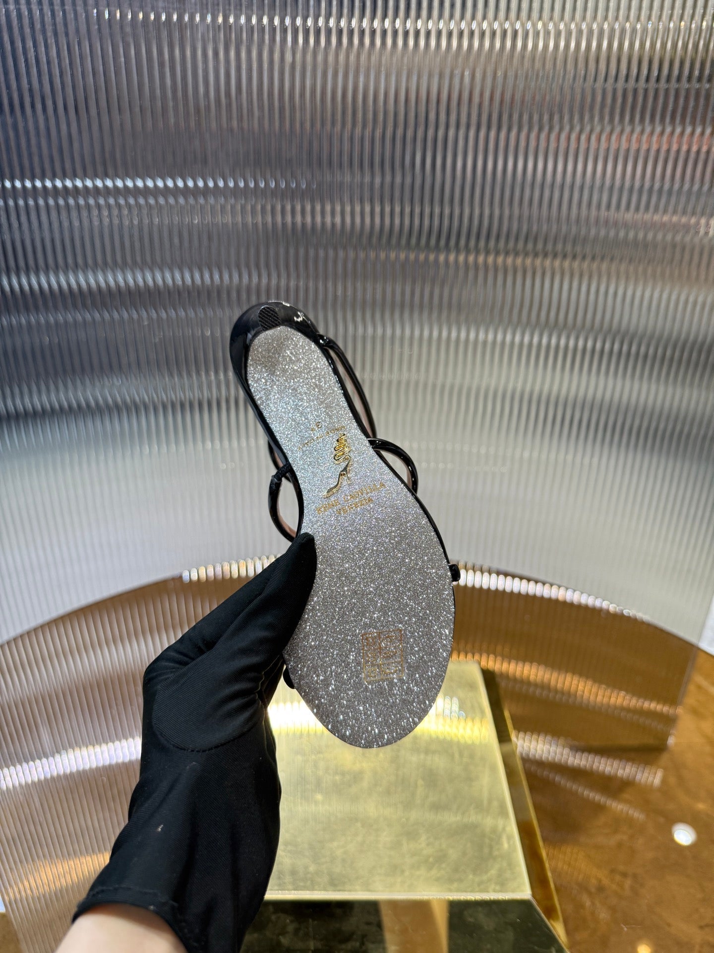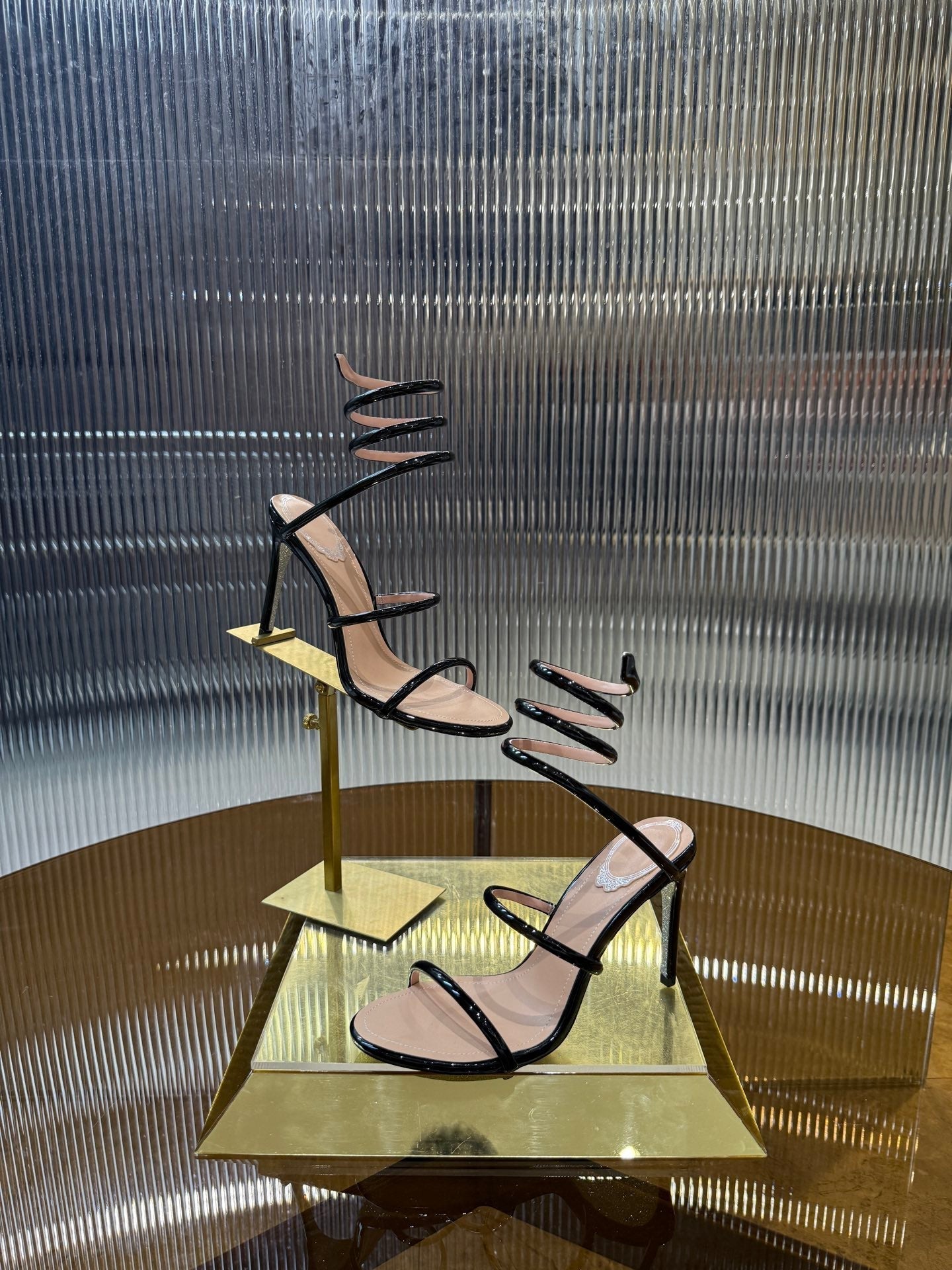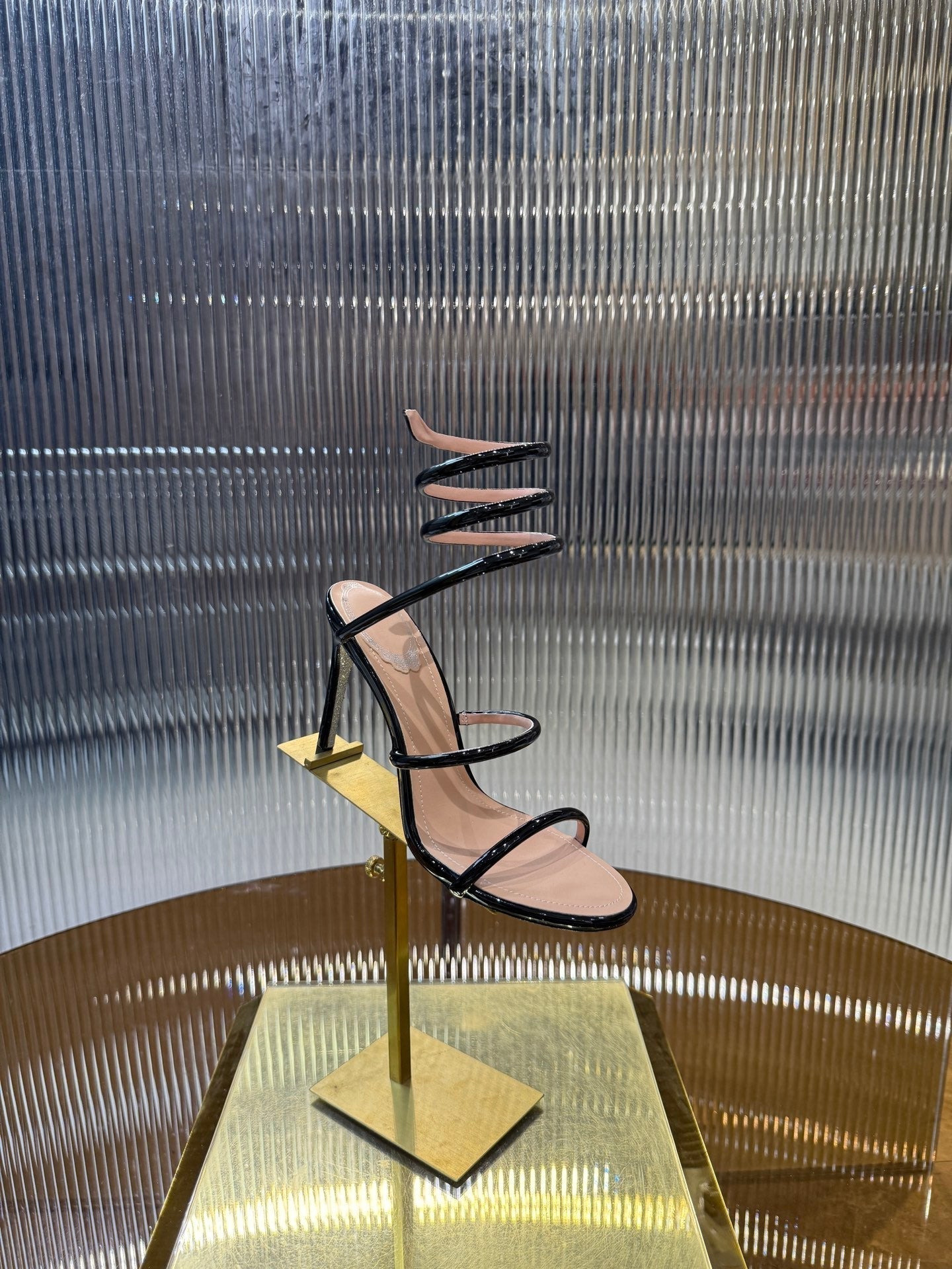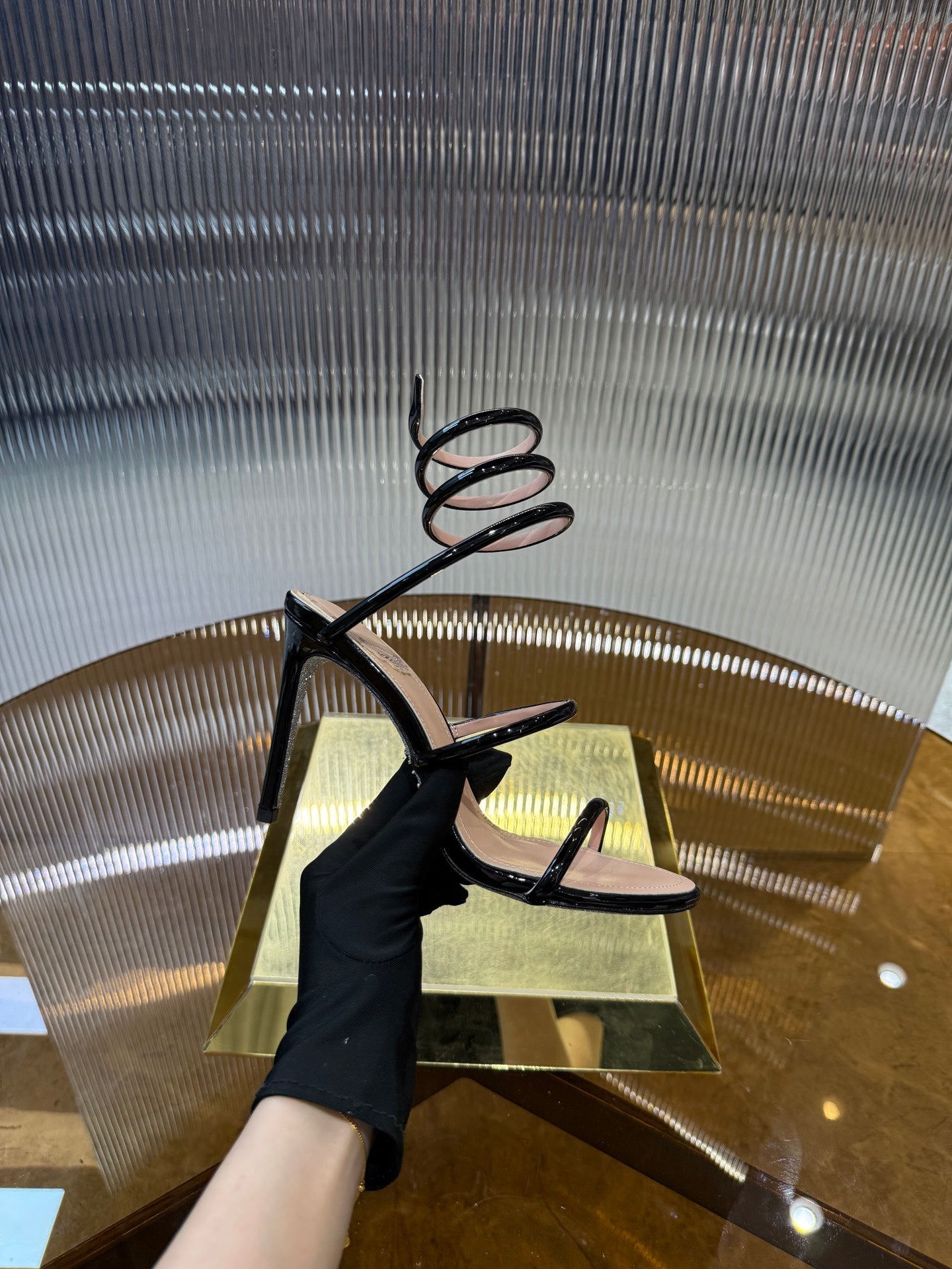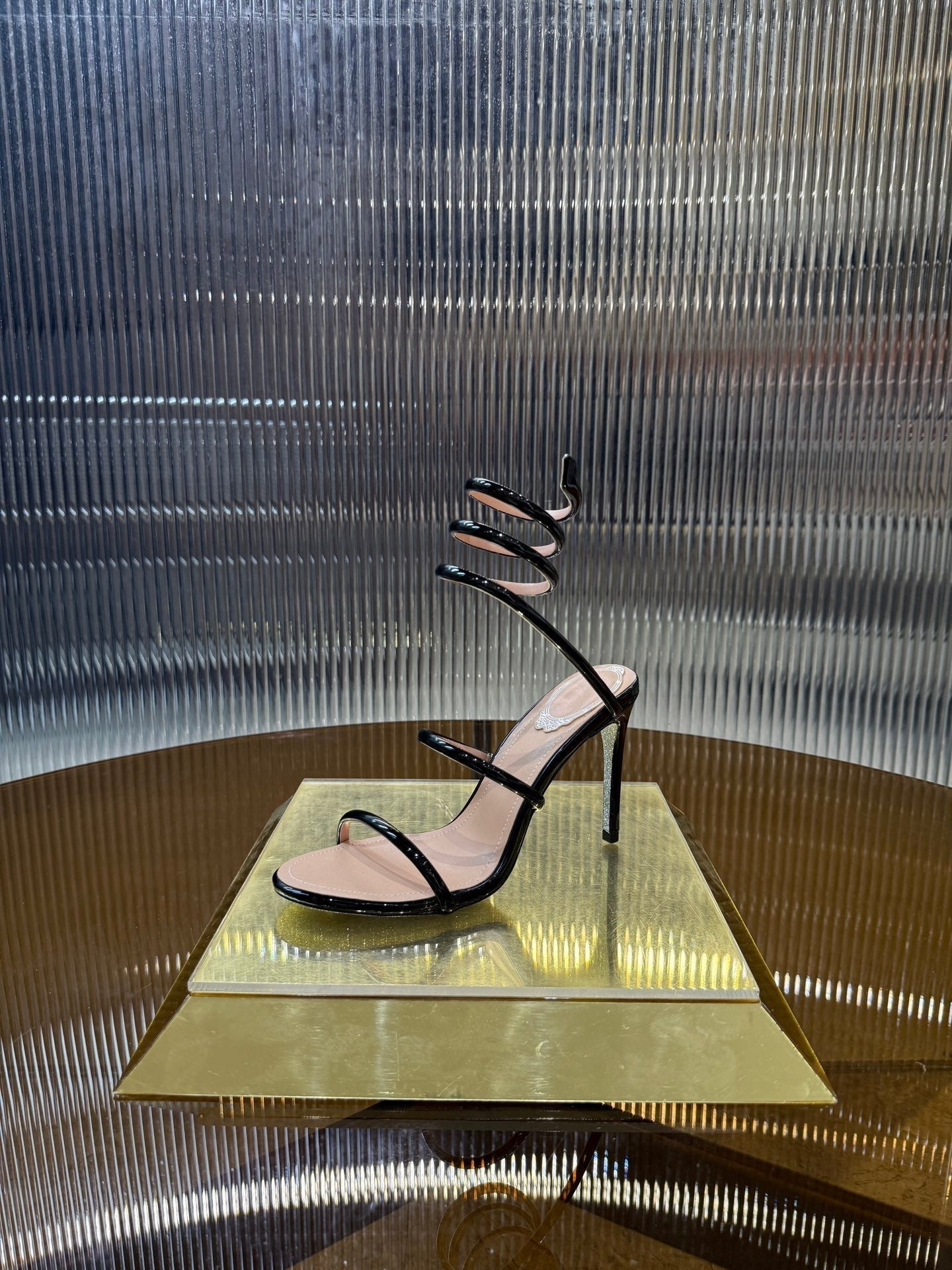 RC 25C Snake-Shaped Sandals 9.5cm Black Sheepskin 310626