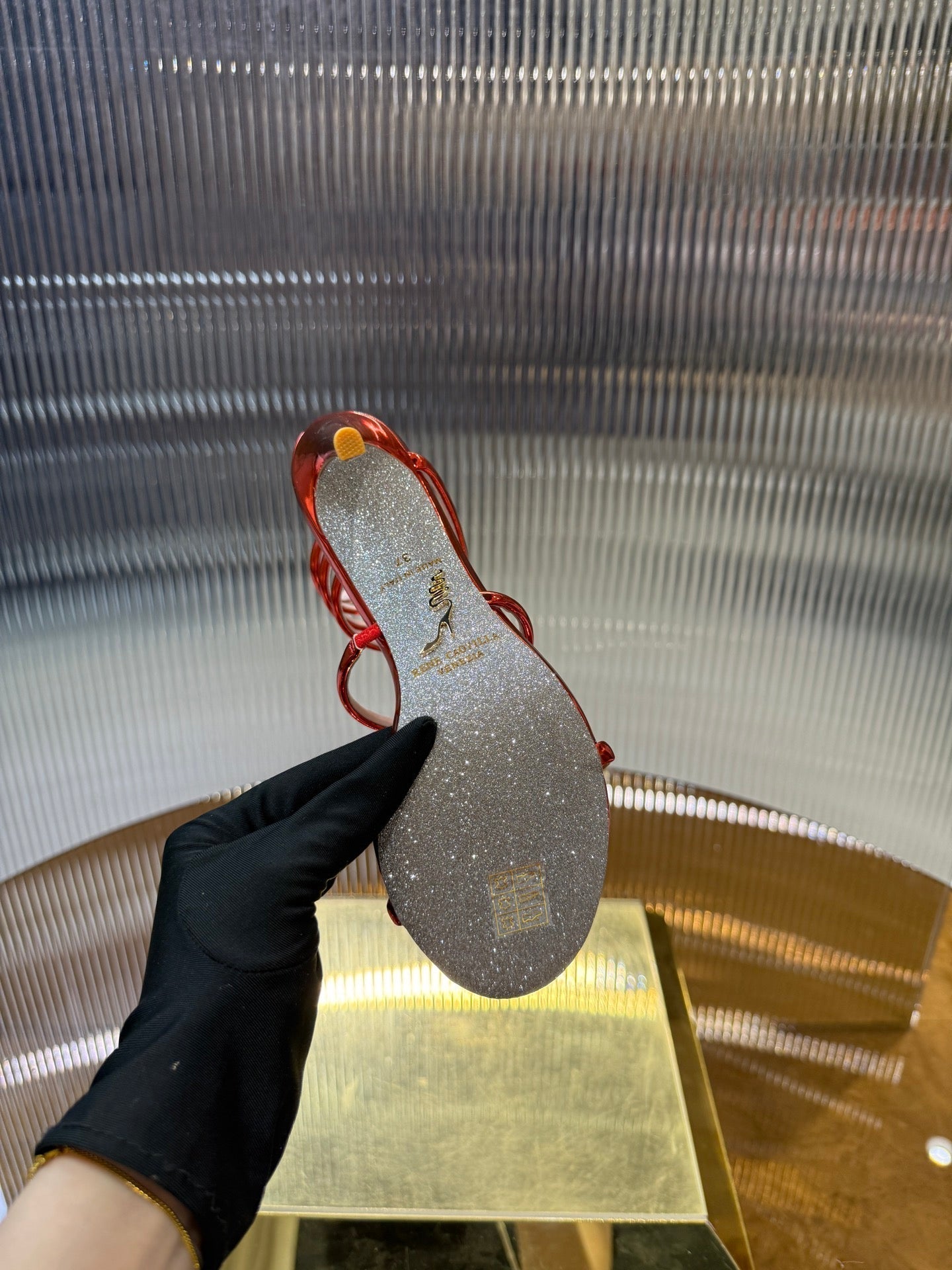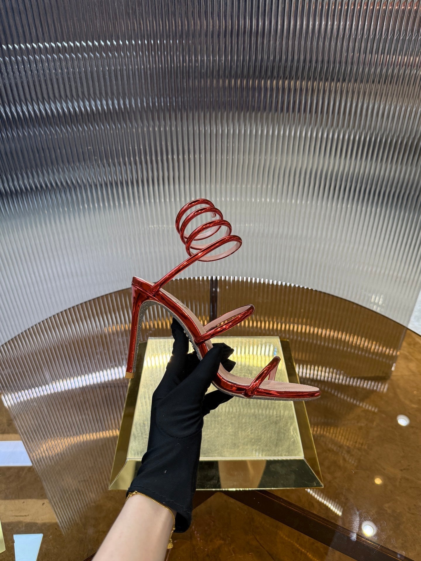 RC 25C Snake-Shaped Sandals 9.5cm Red Sheepskin 310631