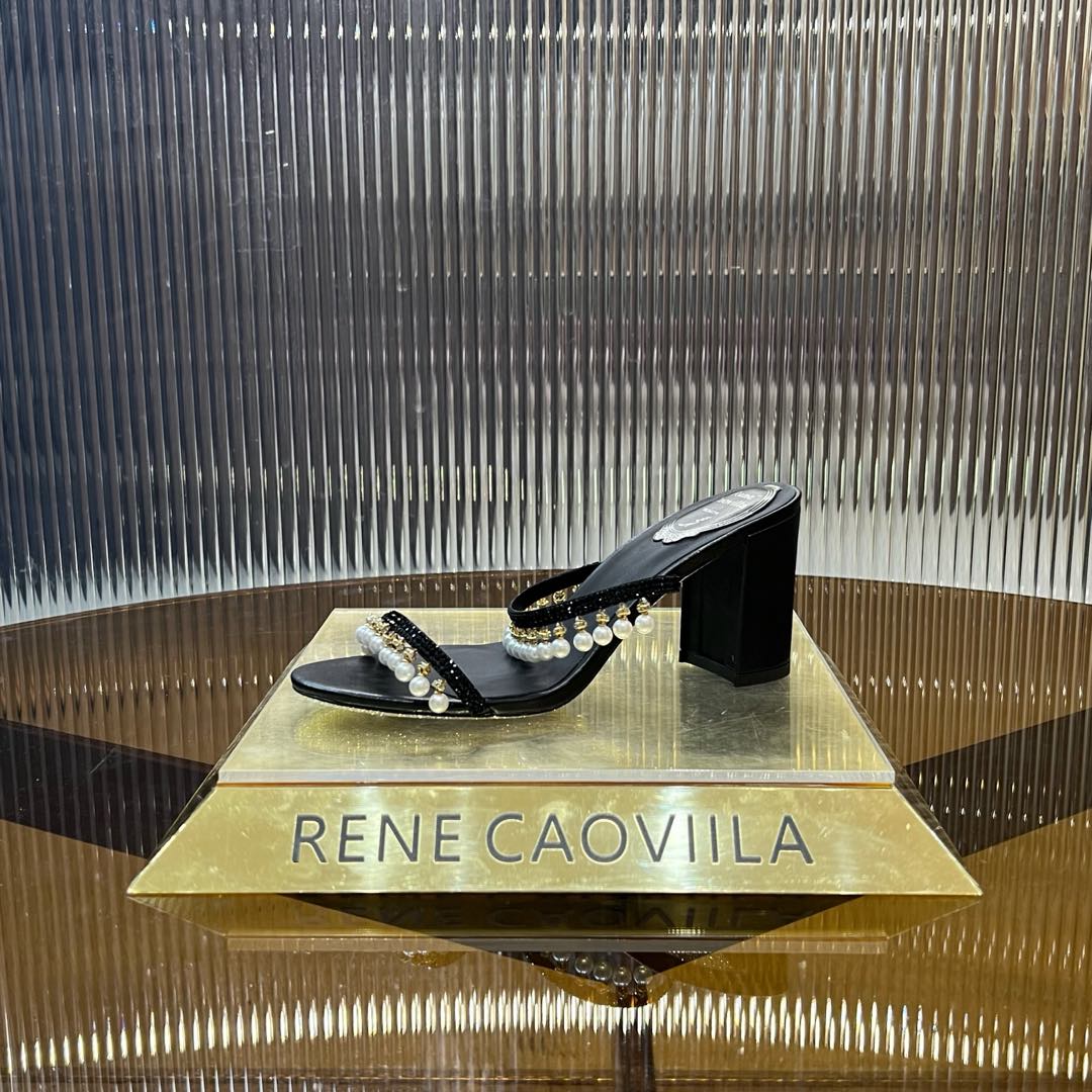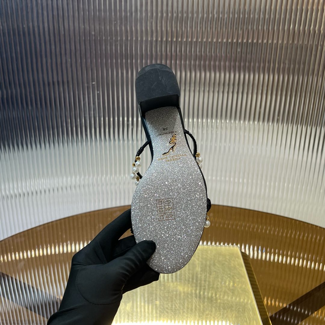RC Gold Buckle Pearl Crystal Lamp Pendant Sandals 7.5 Black Sheepskin 174996