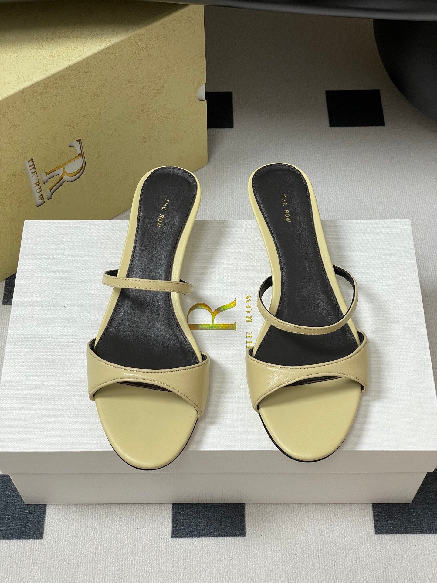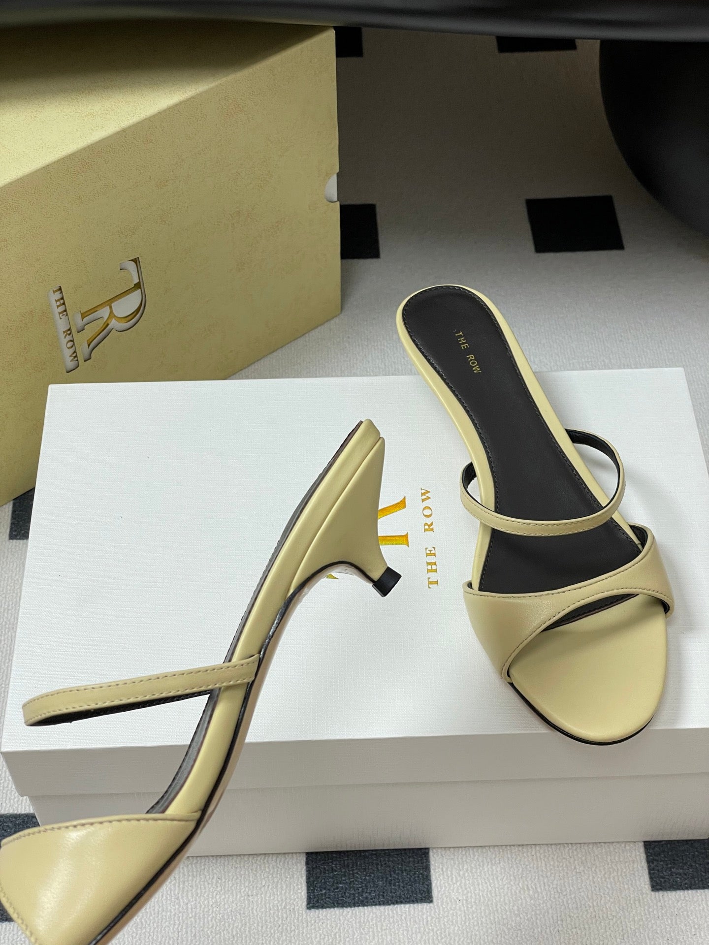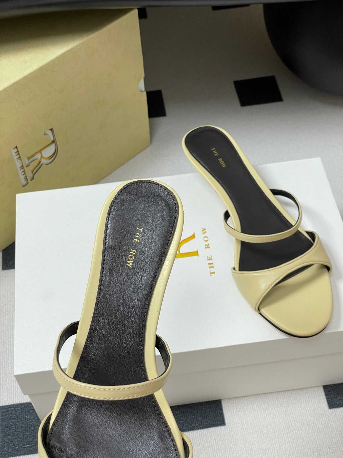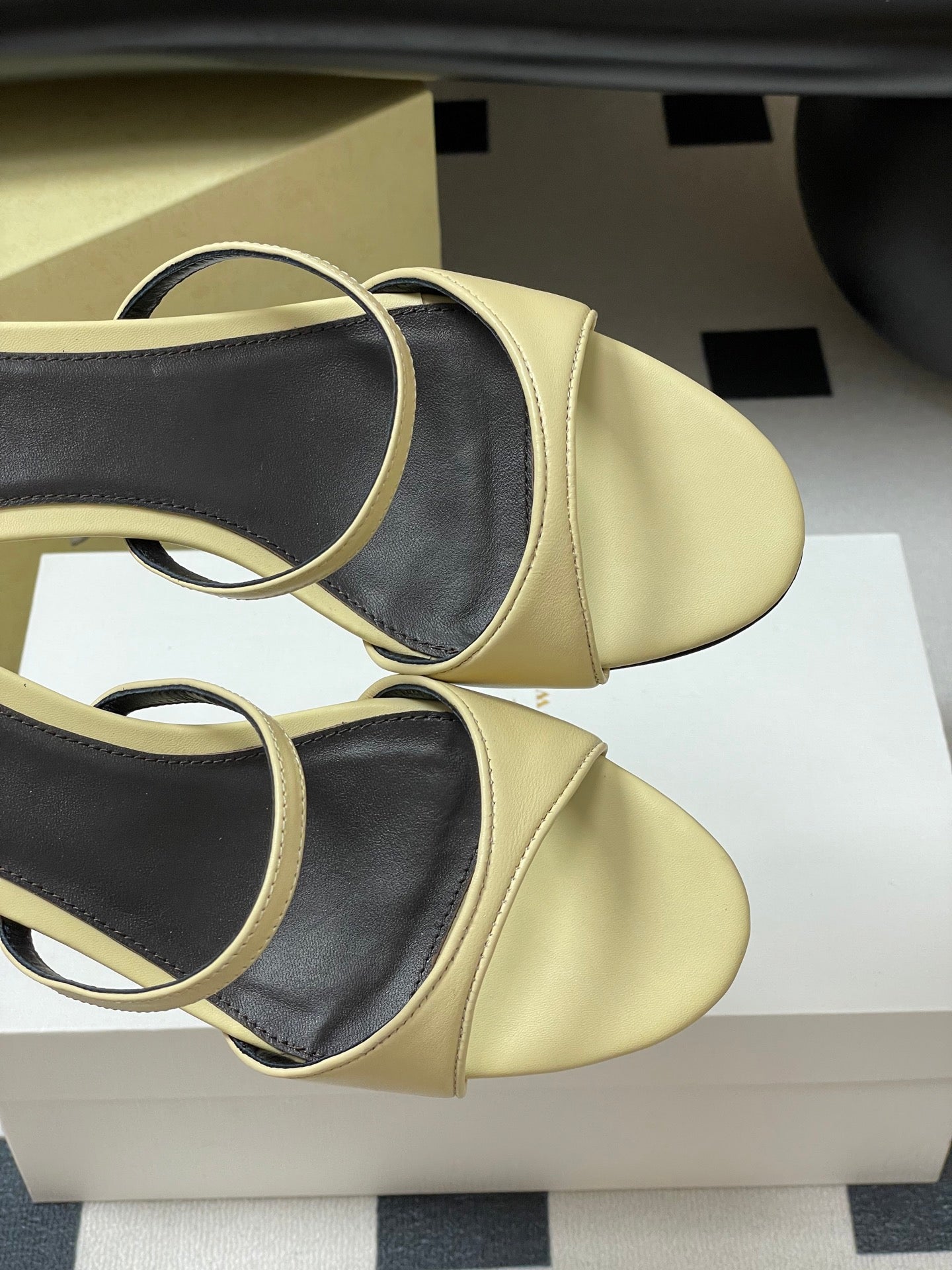 The Row 25S Strap High Heel Mule Sandals 35mm Beige Sheepskin 286215