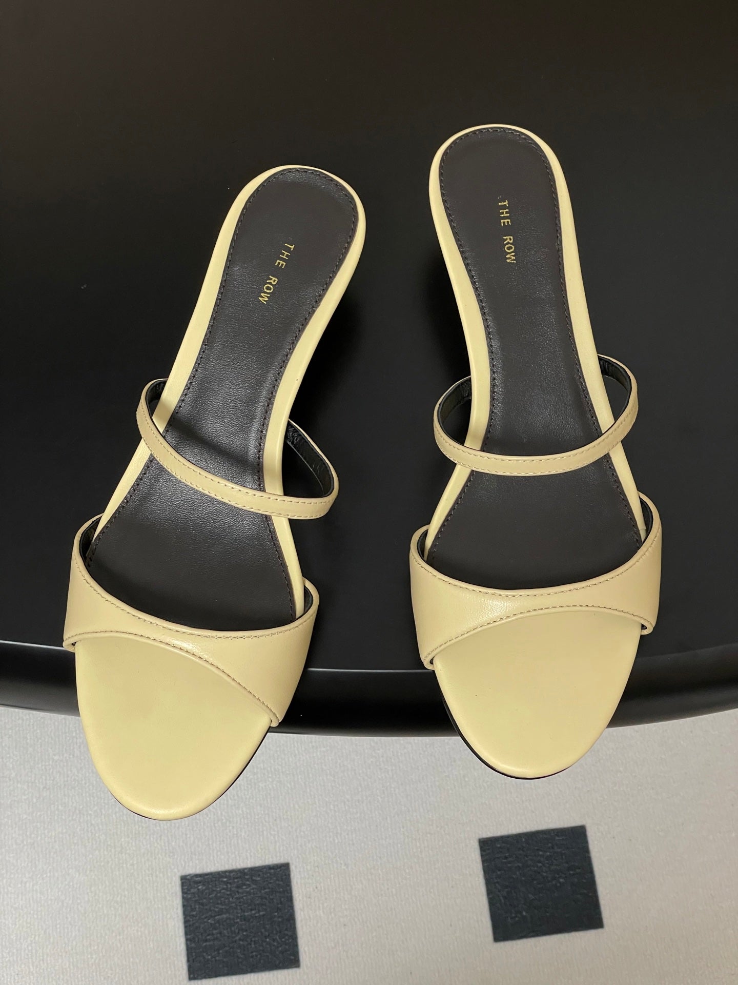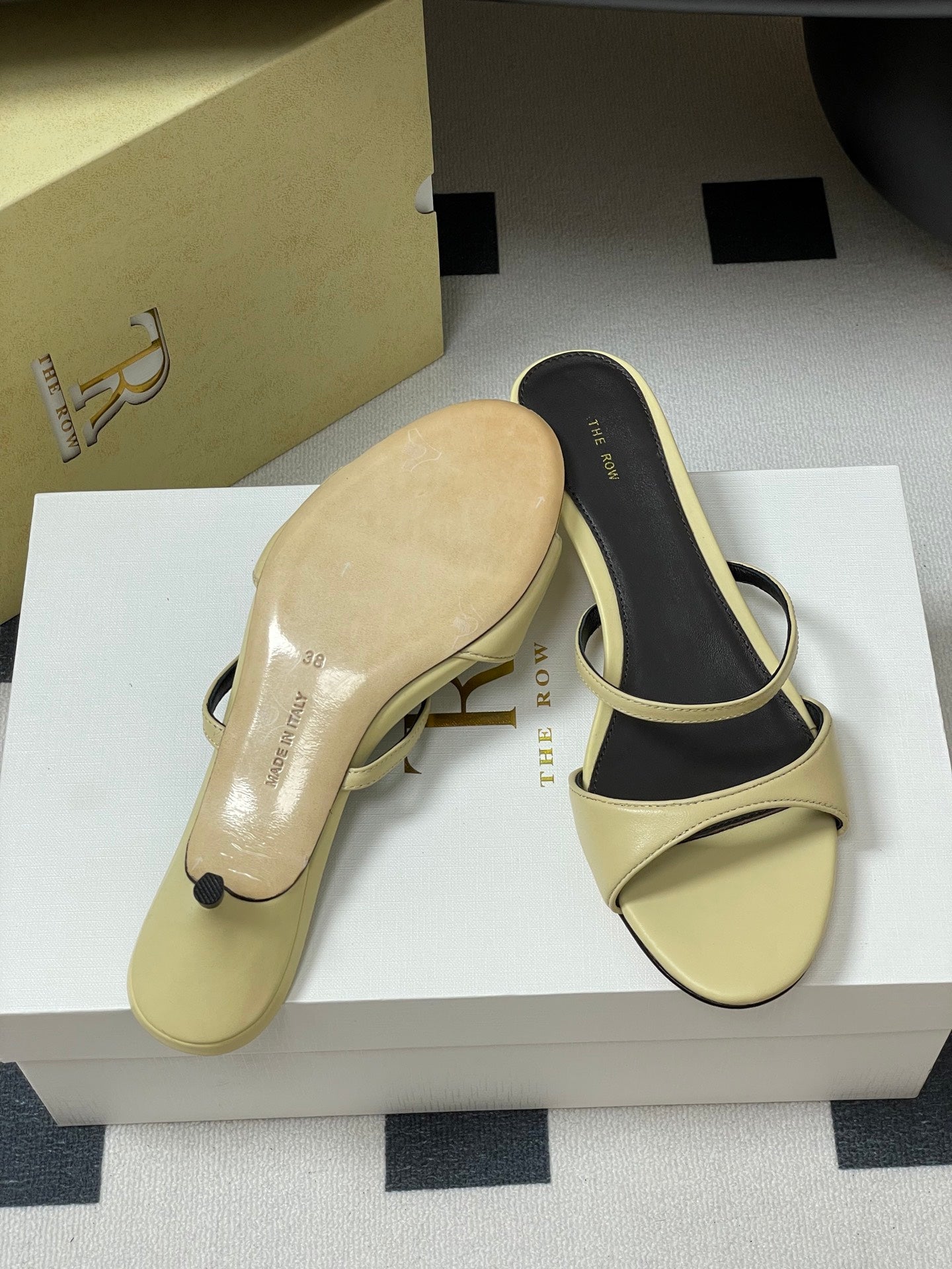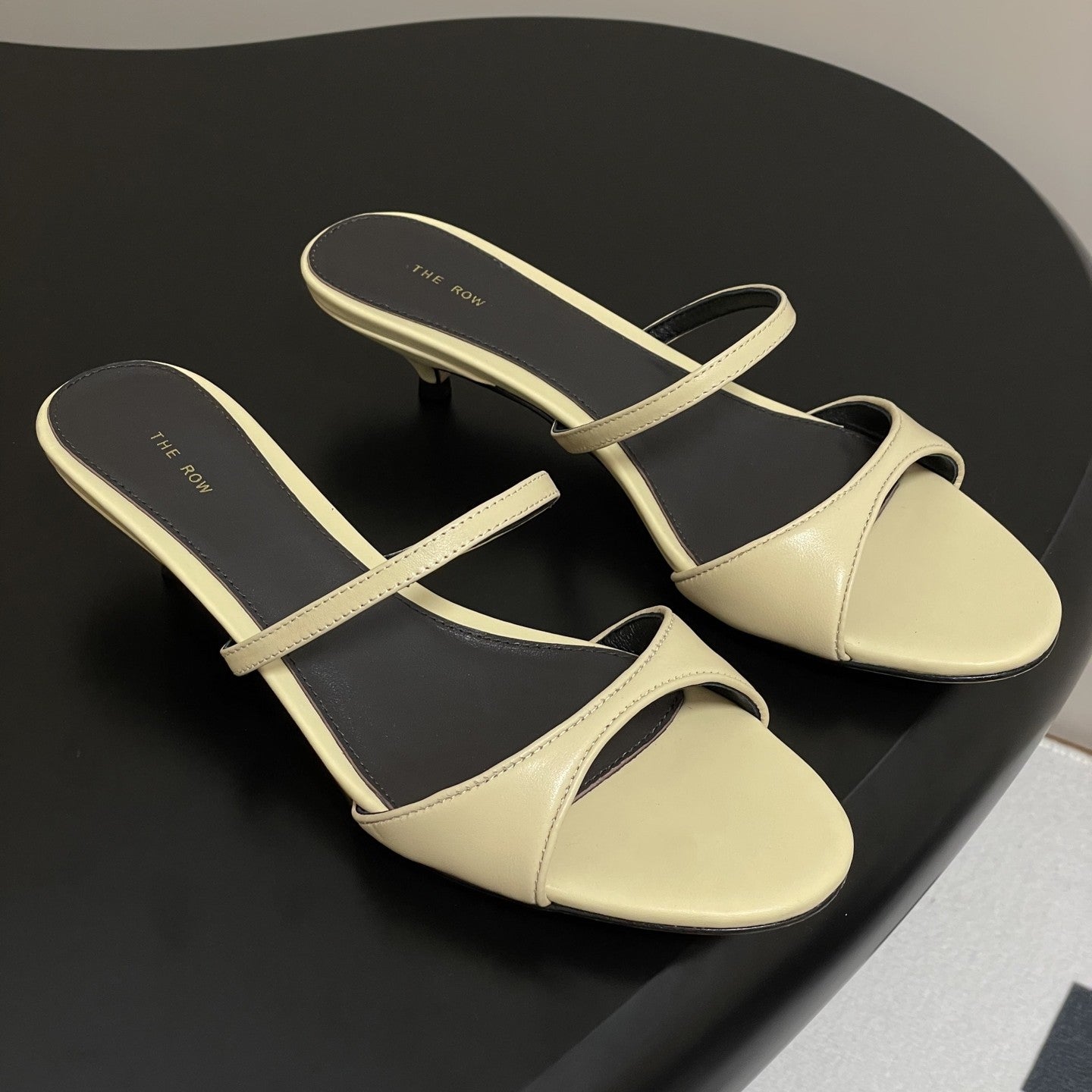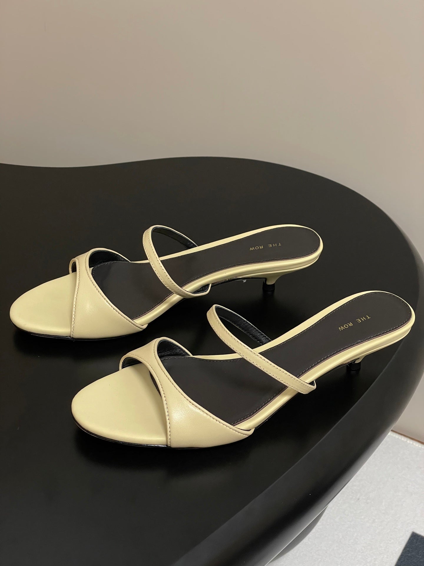 The Row 25S Strap High Heel Mule Sandals 35mm Beige Sheepskin 286215