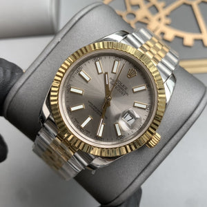 DATEJUST 41MM SMOOTH BEZEL GOLD STEEL GREY DIAL