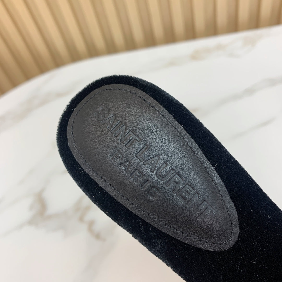 SL CHAIN ATTACH HEELED MULES BLACK VELVET