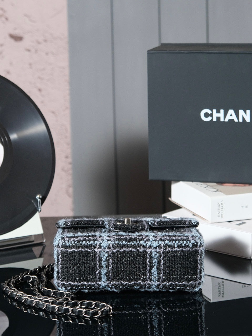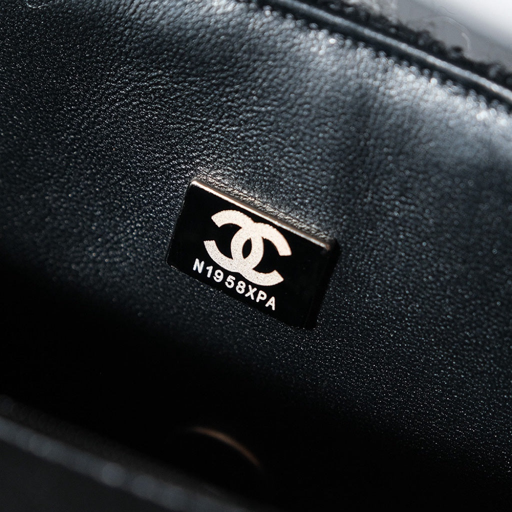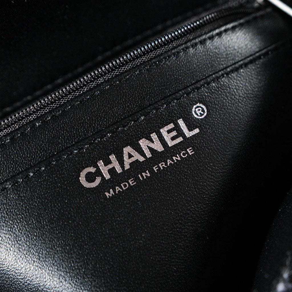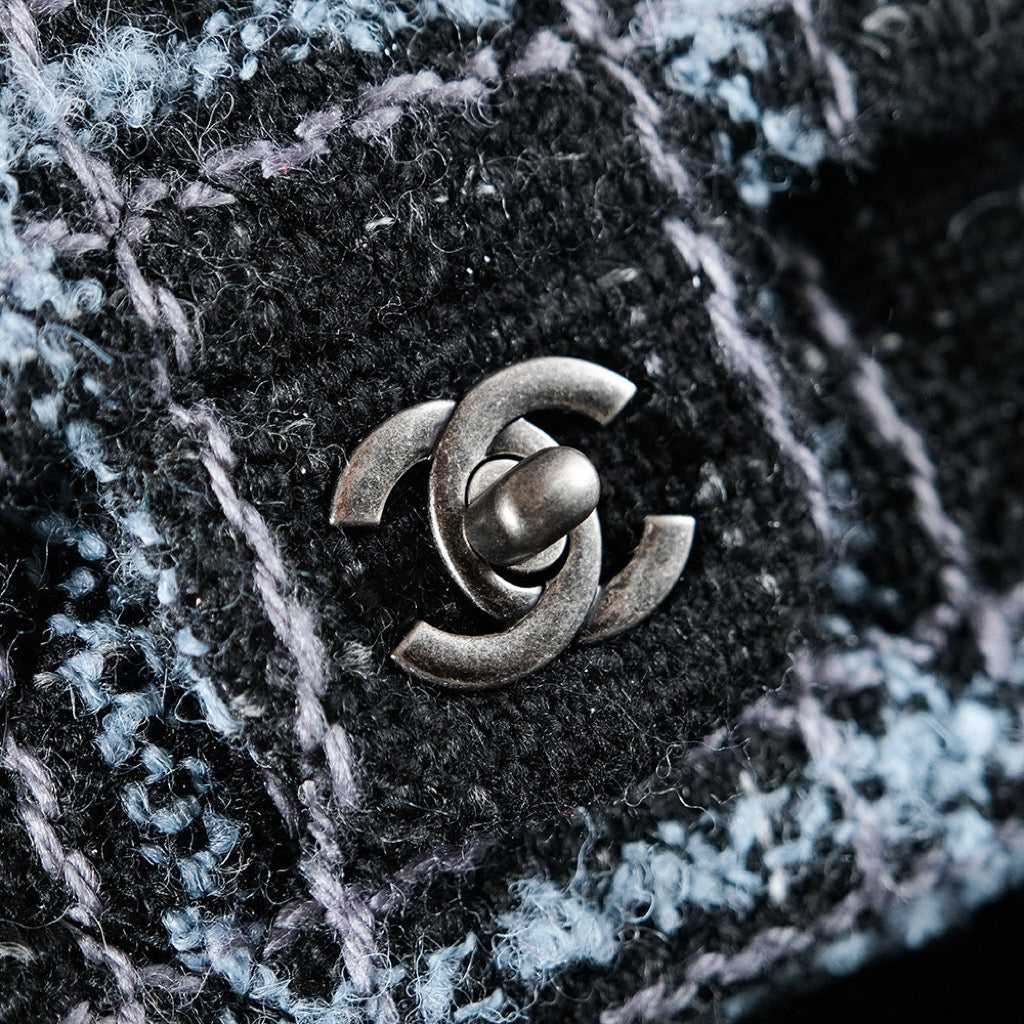 24K Flap Bag 20cm Blue Black Stripe Tweed