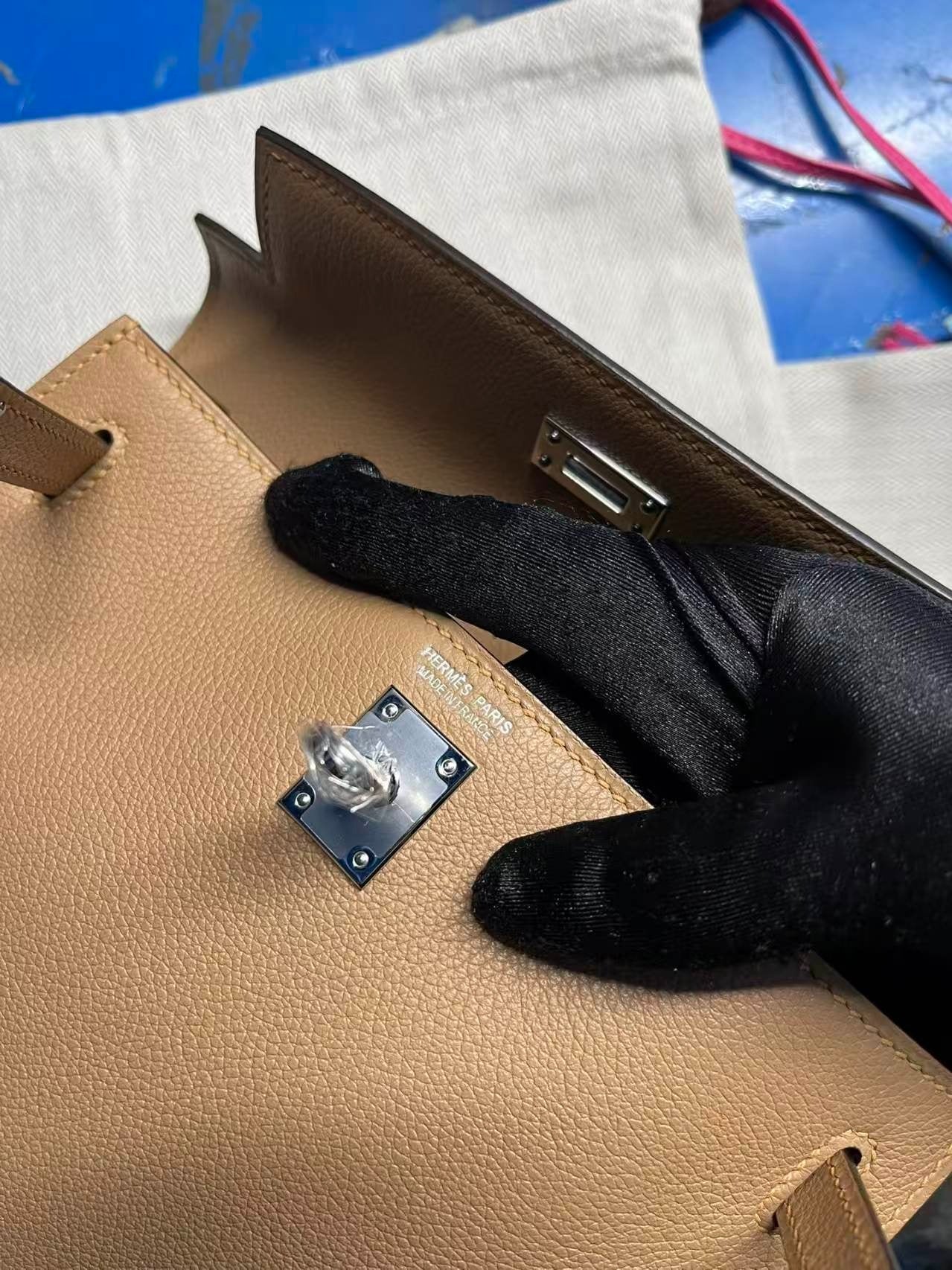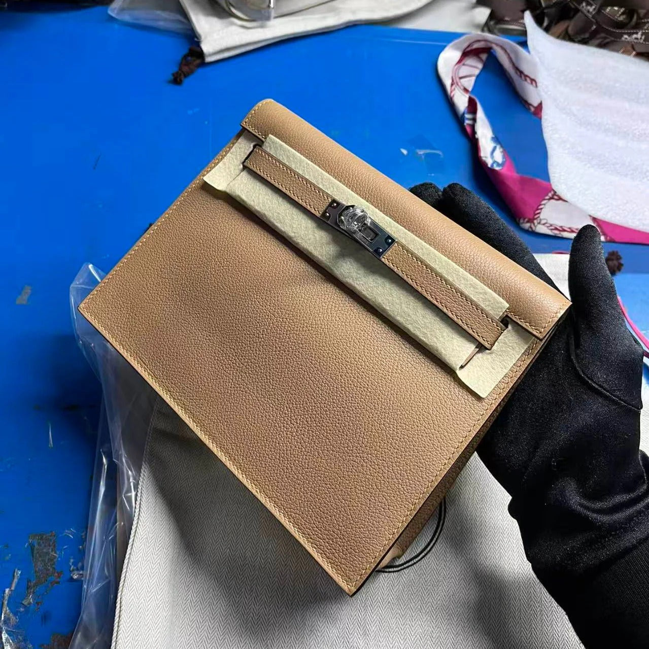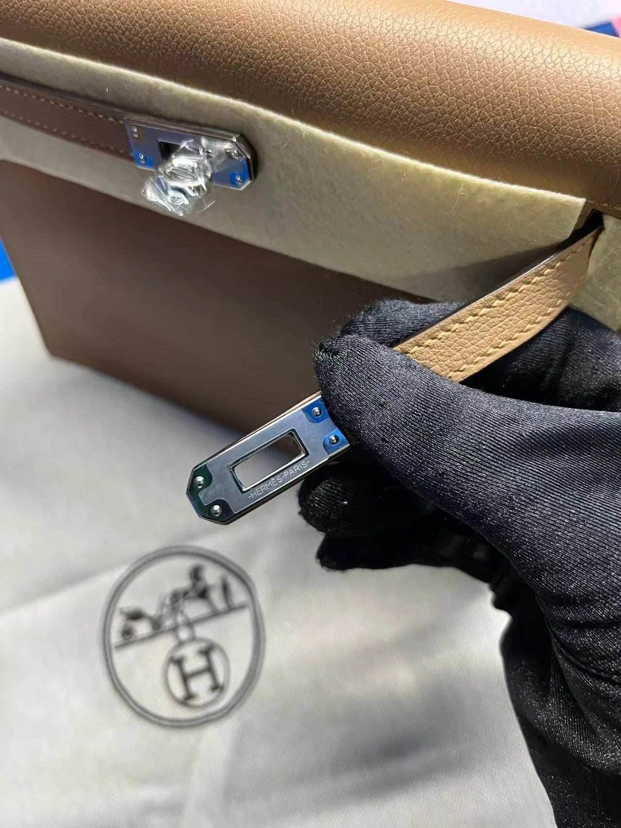 KELLY DANSE 22 TAN BROWN IN CALFSKIN SILVER HARDWARE